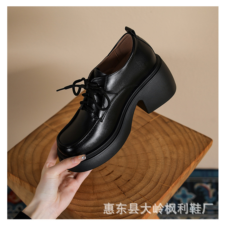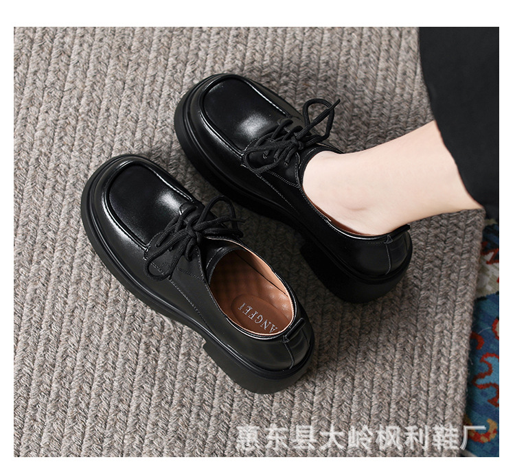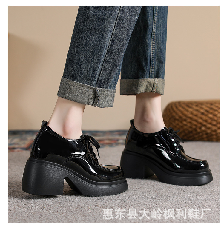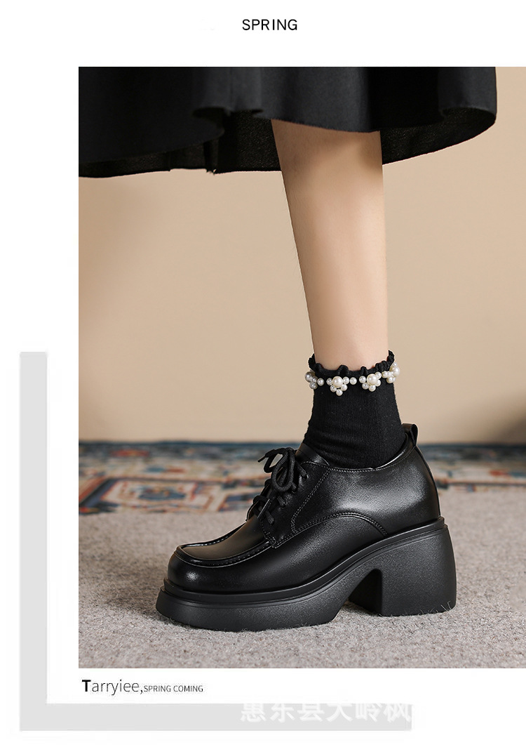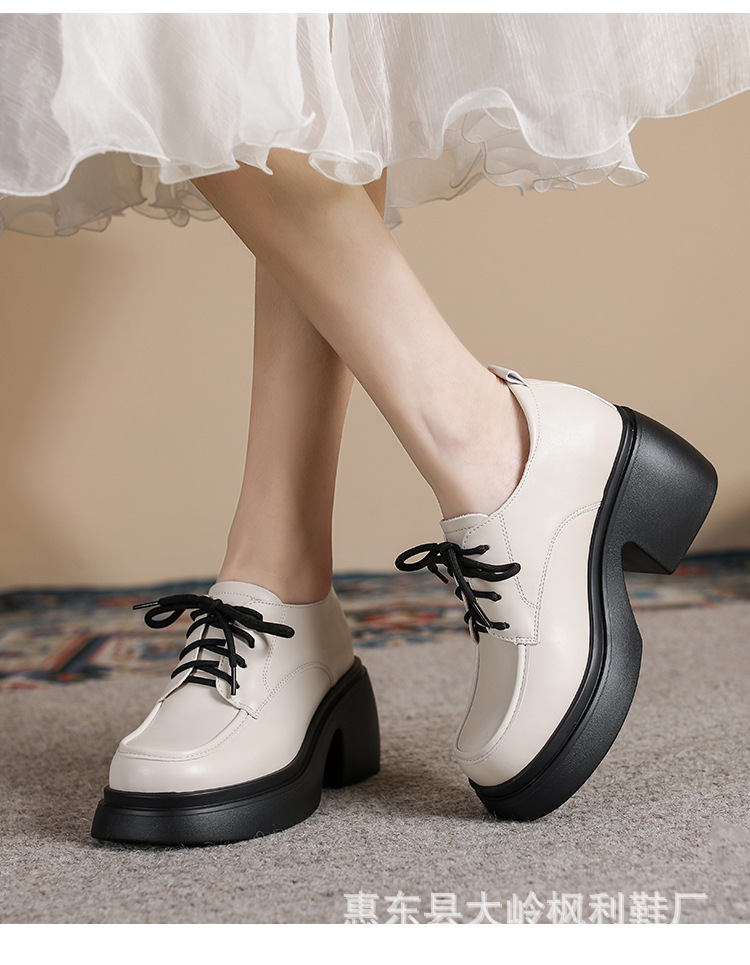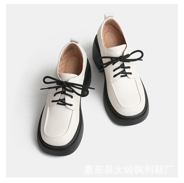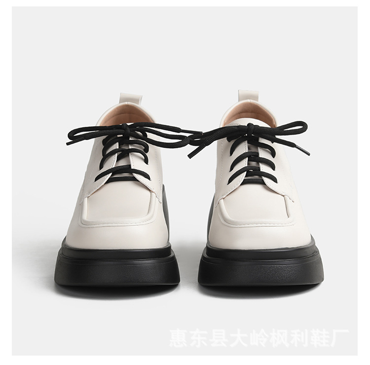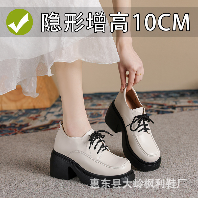 여성의 숨겨진 높이 가죽 신발 2024 봄 새로운 단층 신발 슬립 온 플랫폼 프레피 스타일 레이스 업 로퍼스토어 가기