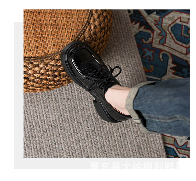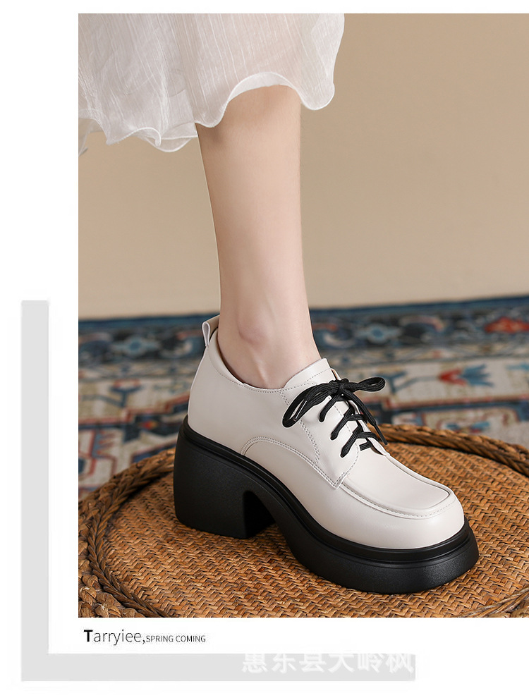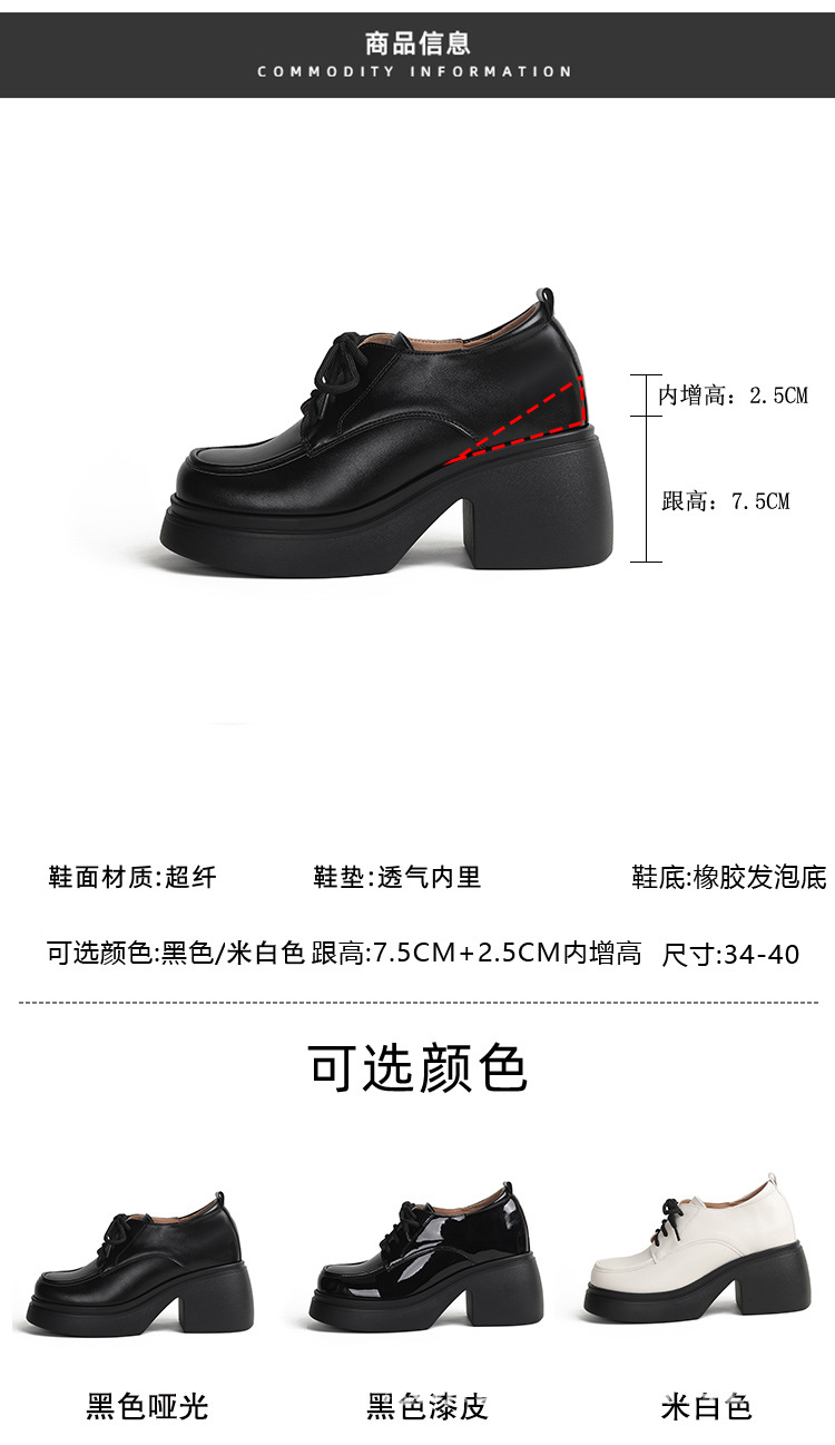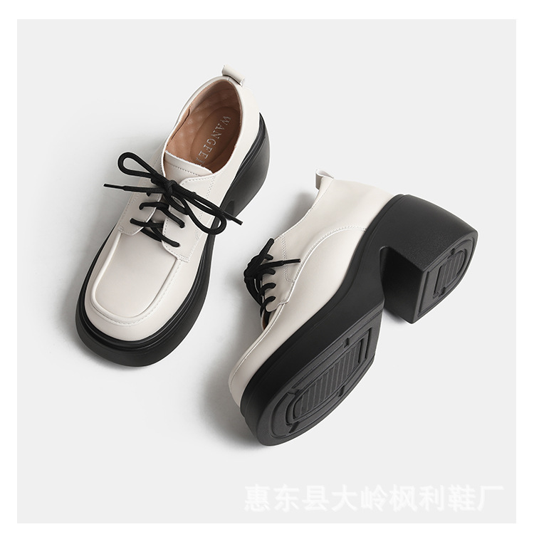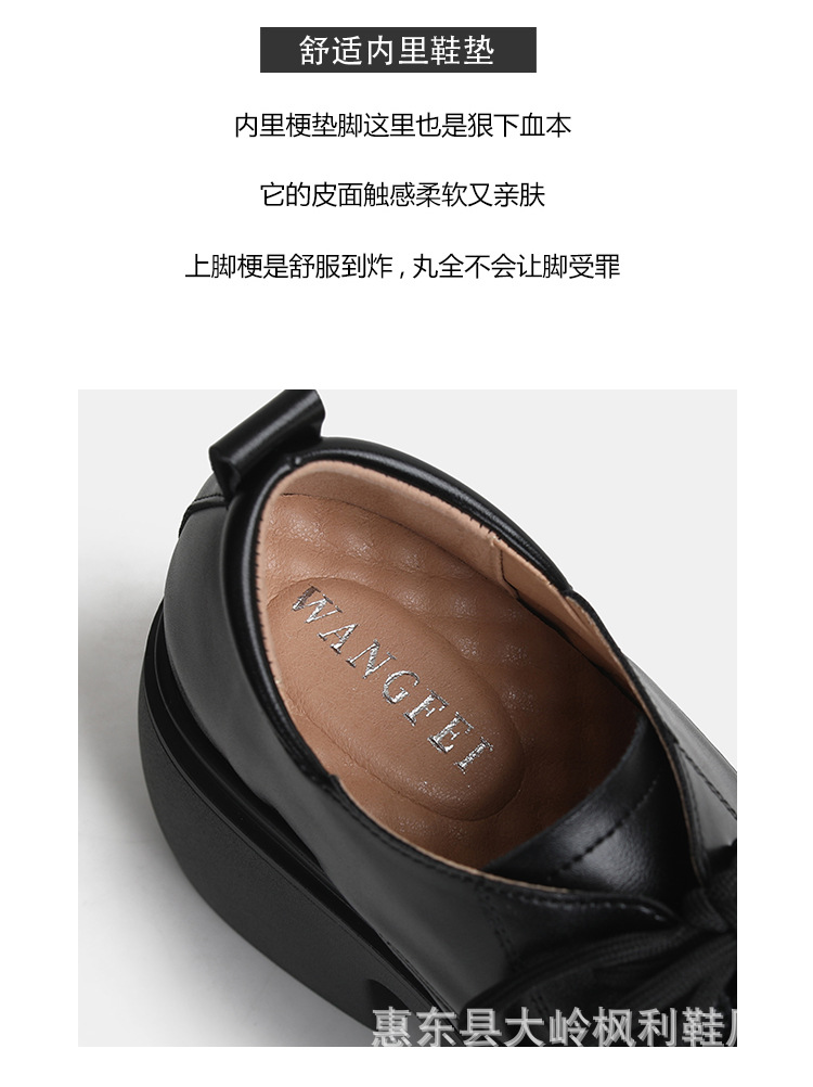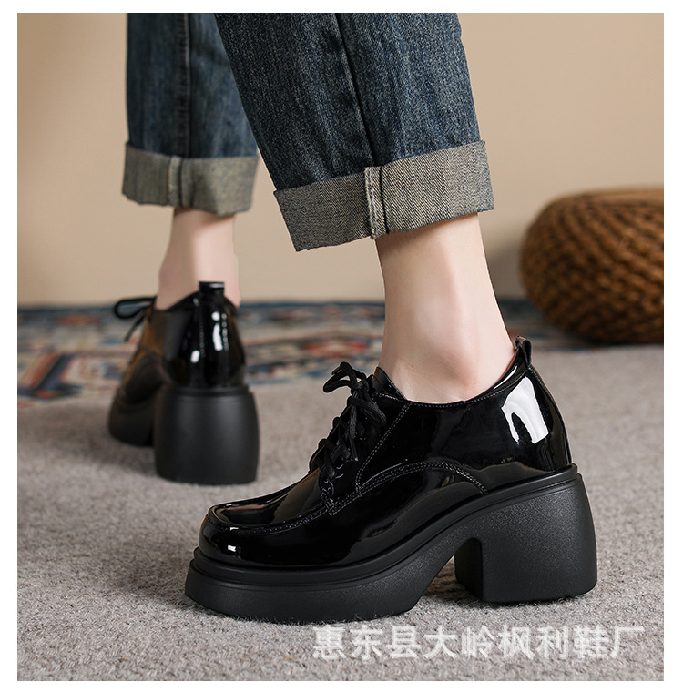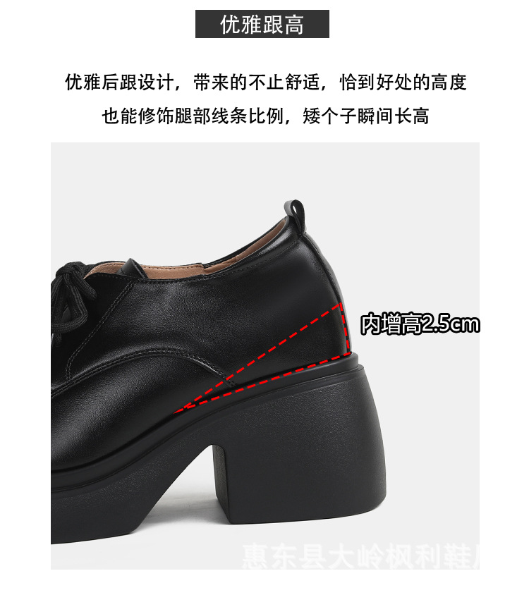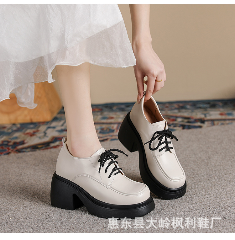 여성의 숨겨진 높이 가죽 신발 2024 봄 새로운 단층 신발 슬립 온 플랫폼 프레피 스타일 레이스 업 로퍼스토어 가기