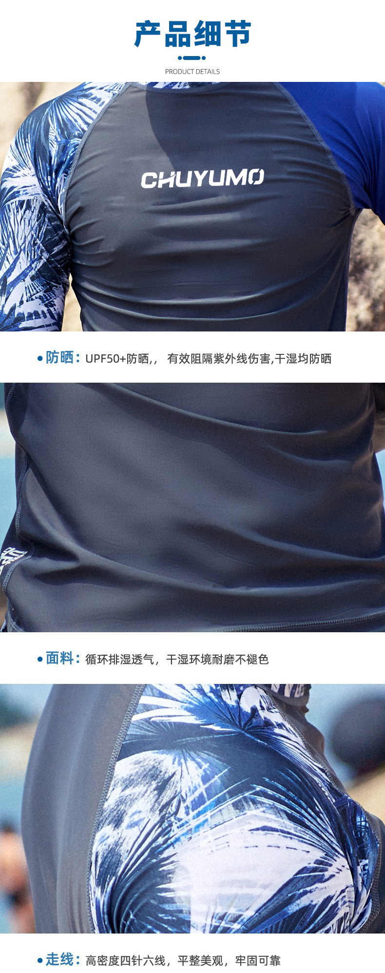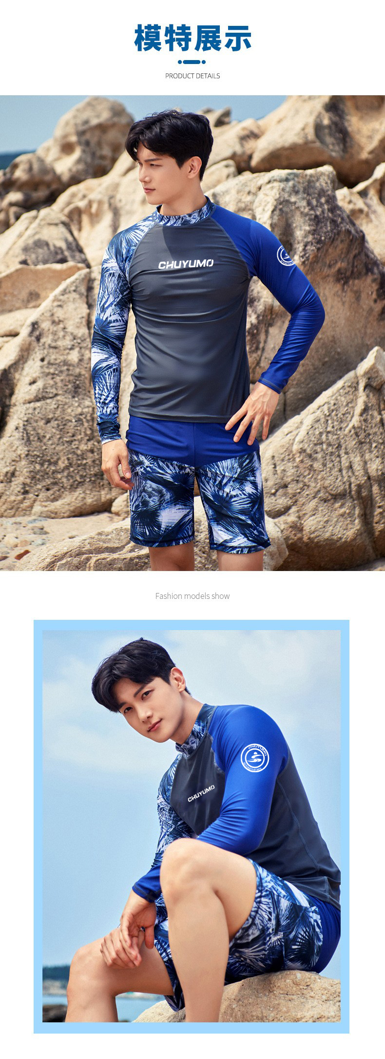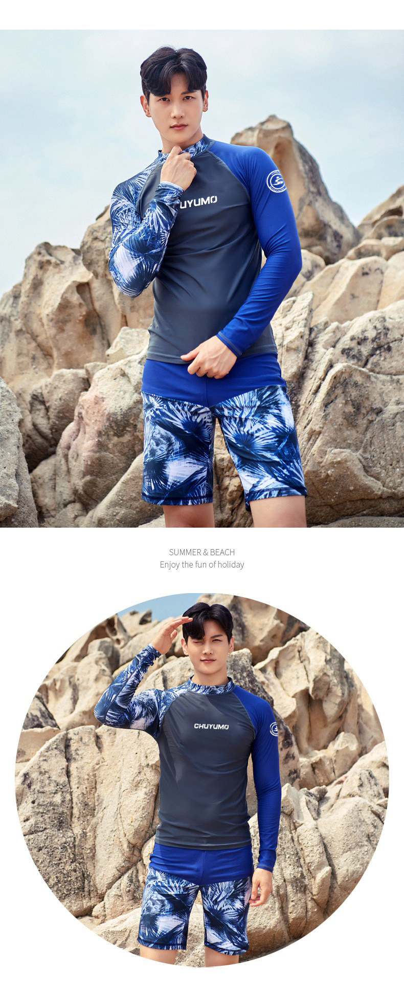 • MCY06 수영복 그레이 바디 블루 슬리브 남성 풀오버