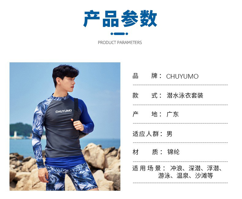 남성용 잠수복 프린트 라운드넥 아웃도어 서핑 긴팔 중간 길이 바지 분리형 수영복 래프팅 점프슈트