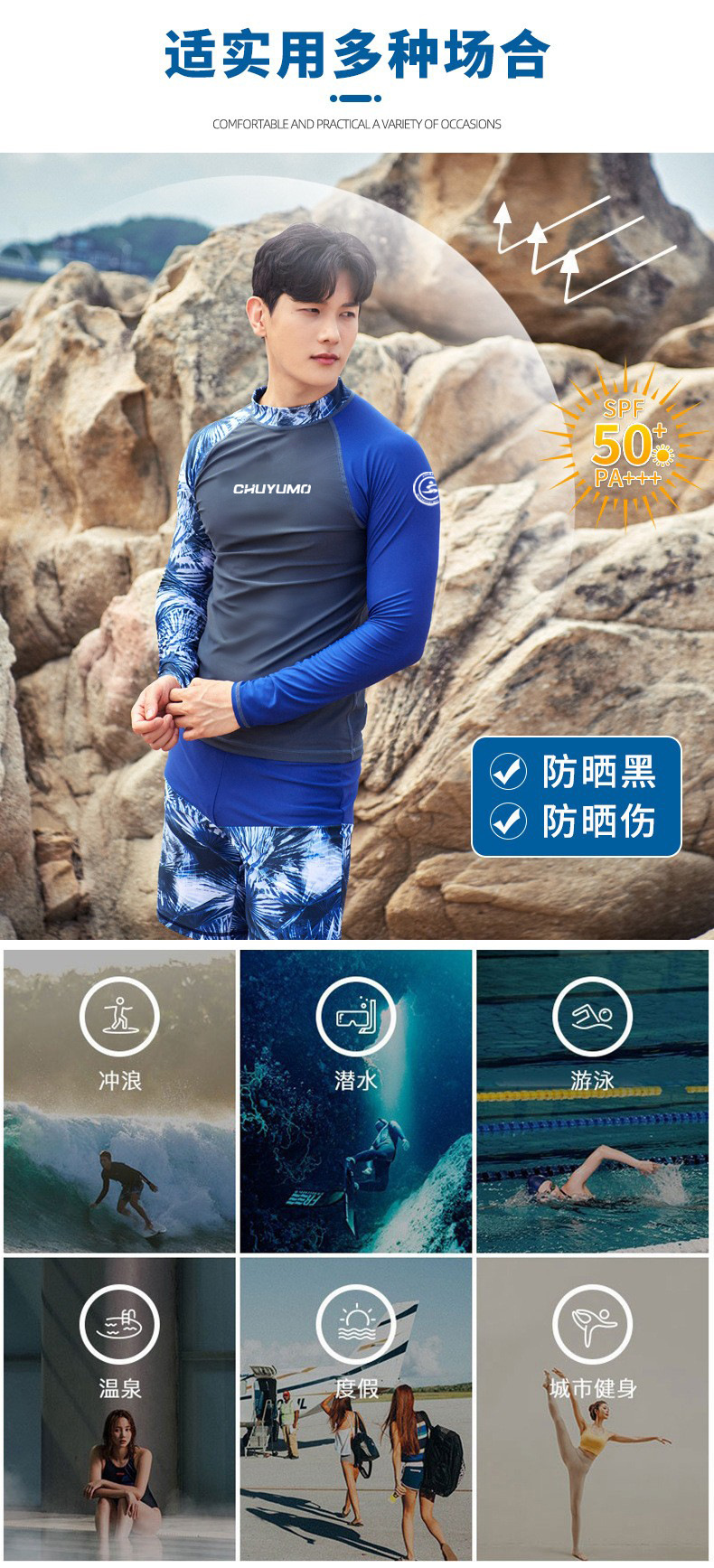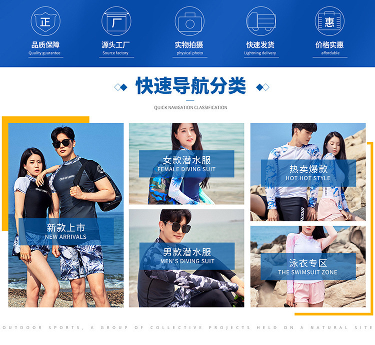 남성용 잠수복 프린트 라운드넥 아웃도어 서핑 긴팔 중간 길이 바지 분리형 수영복 래프팅 점프슈트스토어 가기