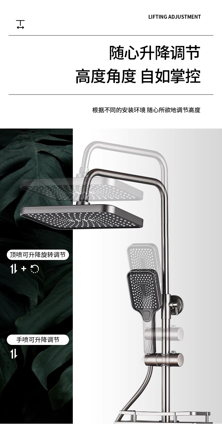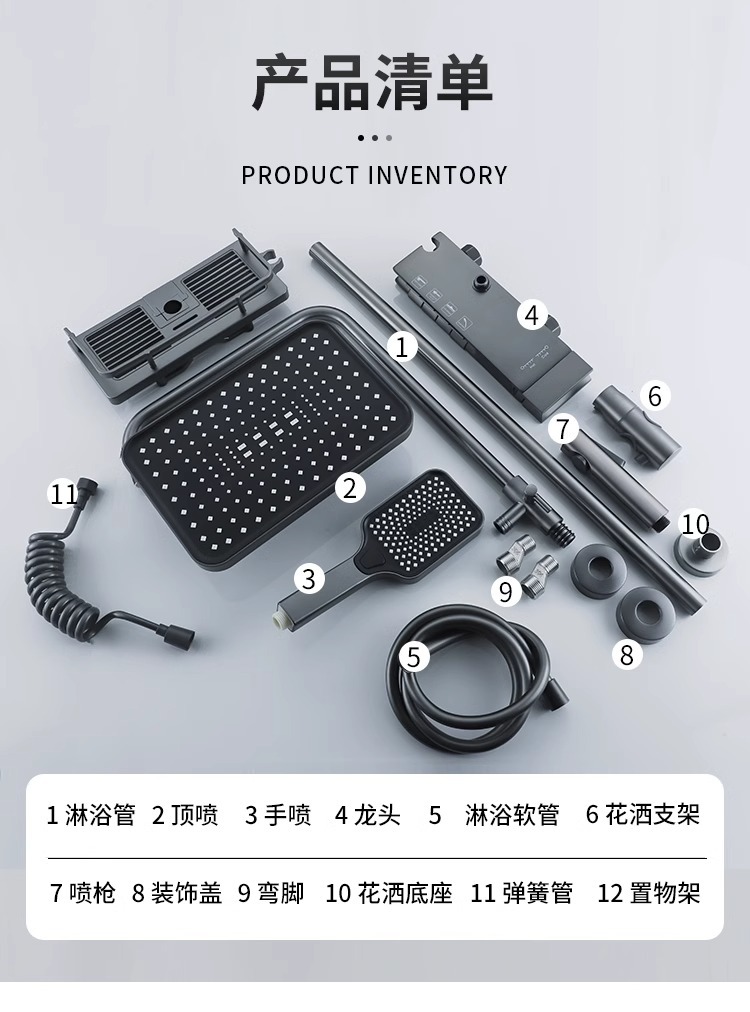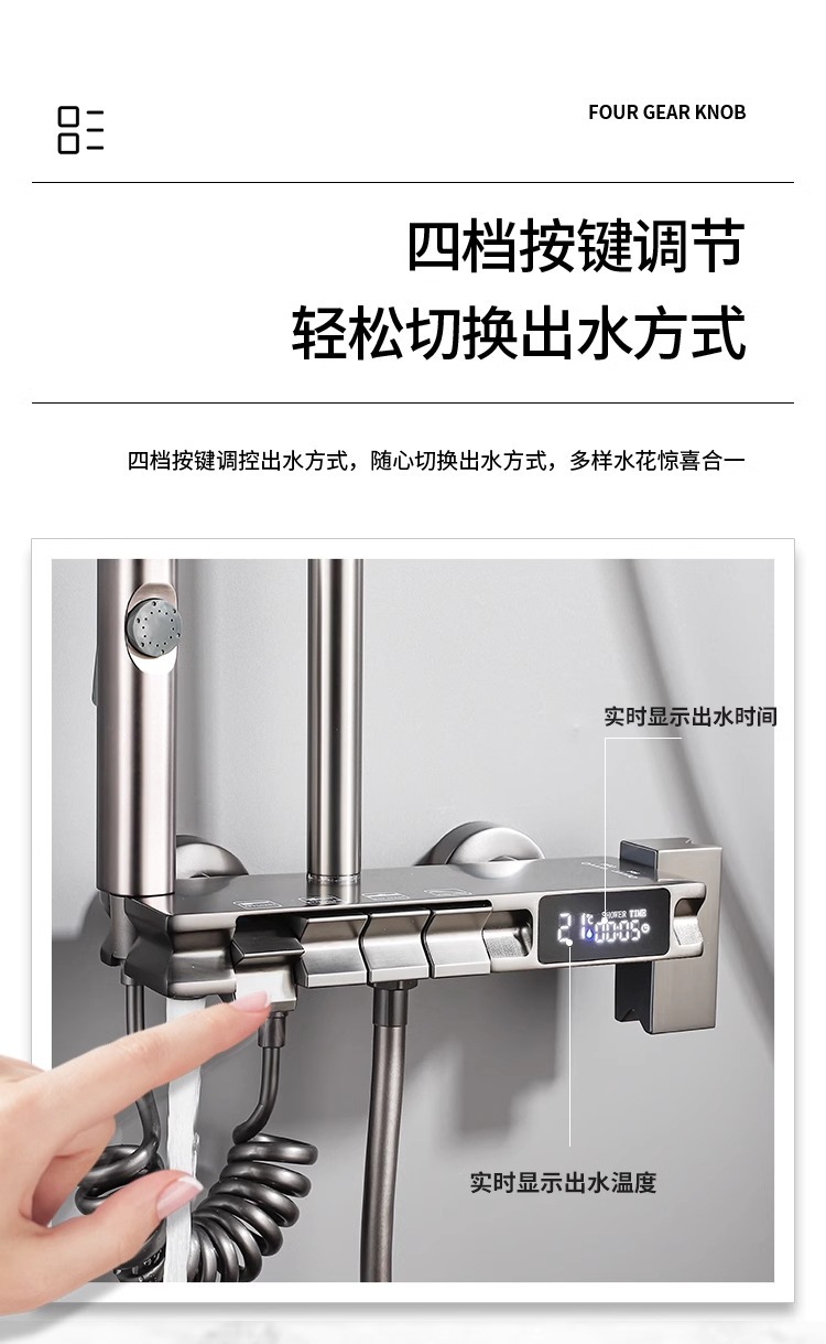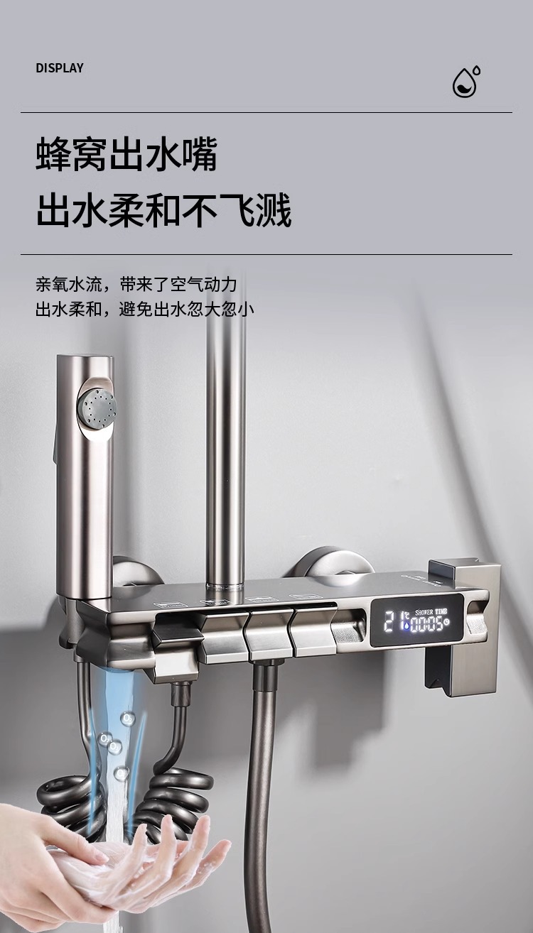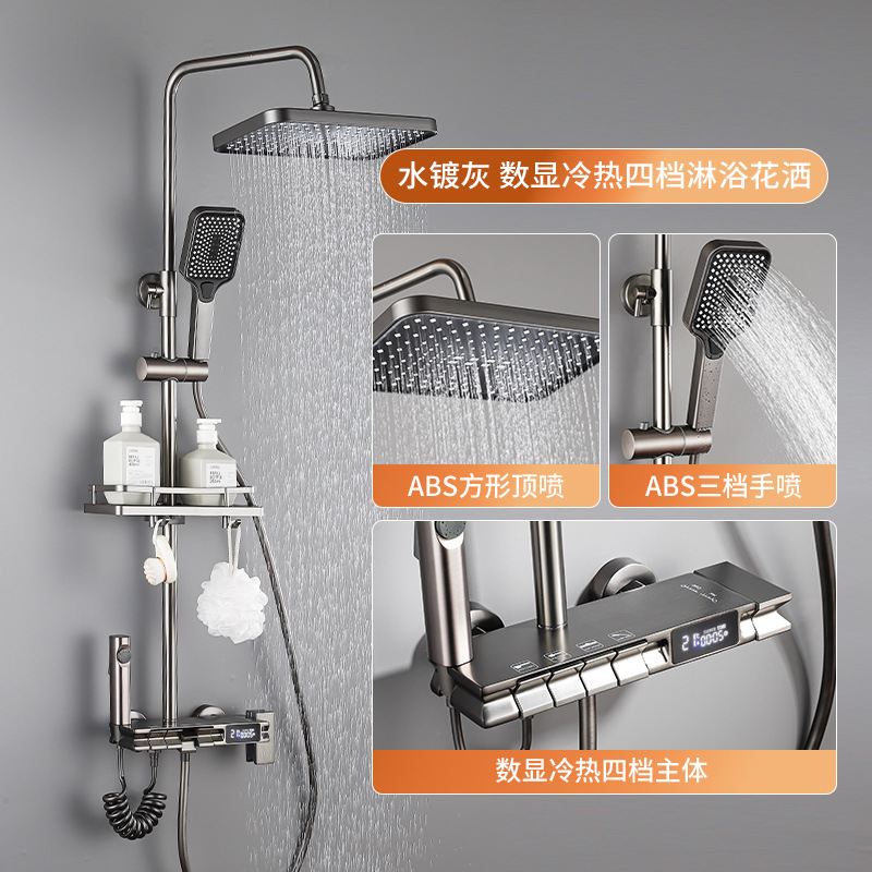 공장 직접 물 도금 회색 구리 일정한 온도 디지털 디스플레이 레인 샤워 세트 가정용 샤워 슈퍼 차저 샤워 노즐스토어 가기