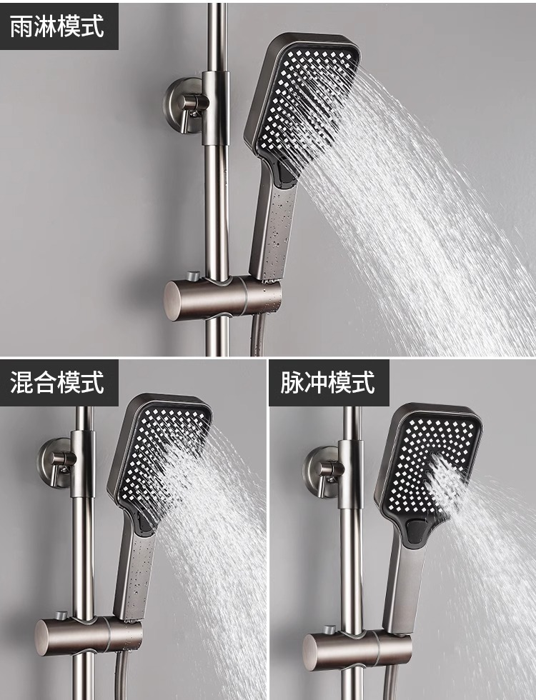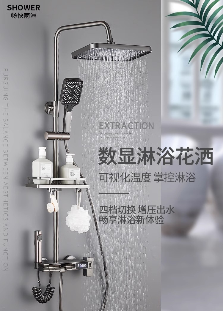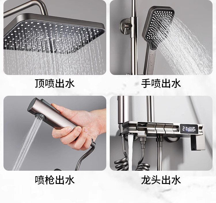 공장 직접 물 도금 회색 구리 일정한 온도 디지털 디스플레이 레인 샤워 세트 가정용 샤워 슈퍼 차저 샤워 노즐