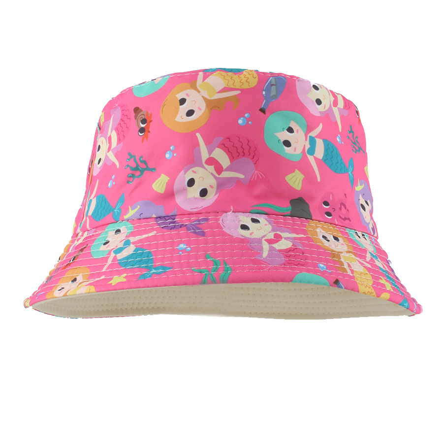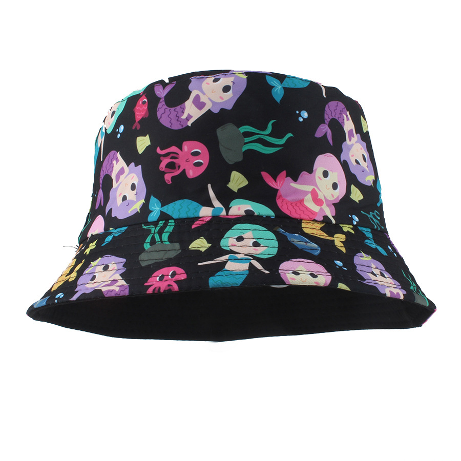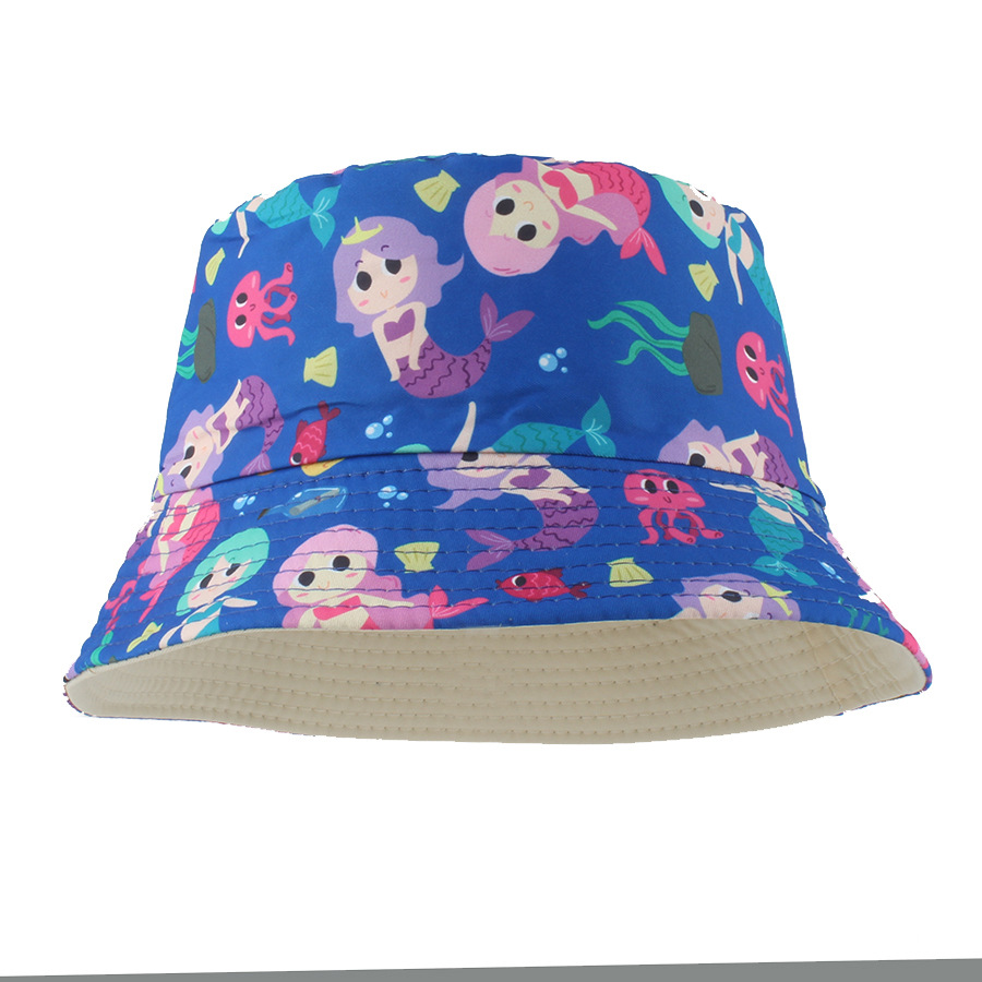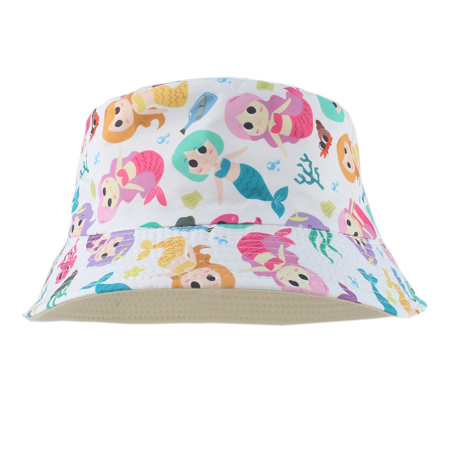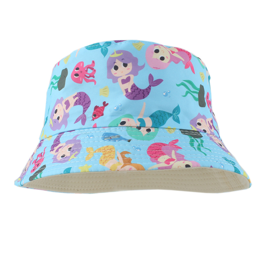 국경 새 어린이 인쇄 어부 모자 만화 인어 양면 분지 모자 여름 여행 모자 2024스토어 가기