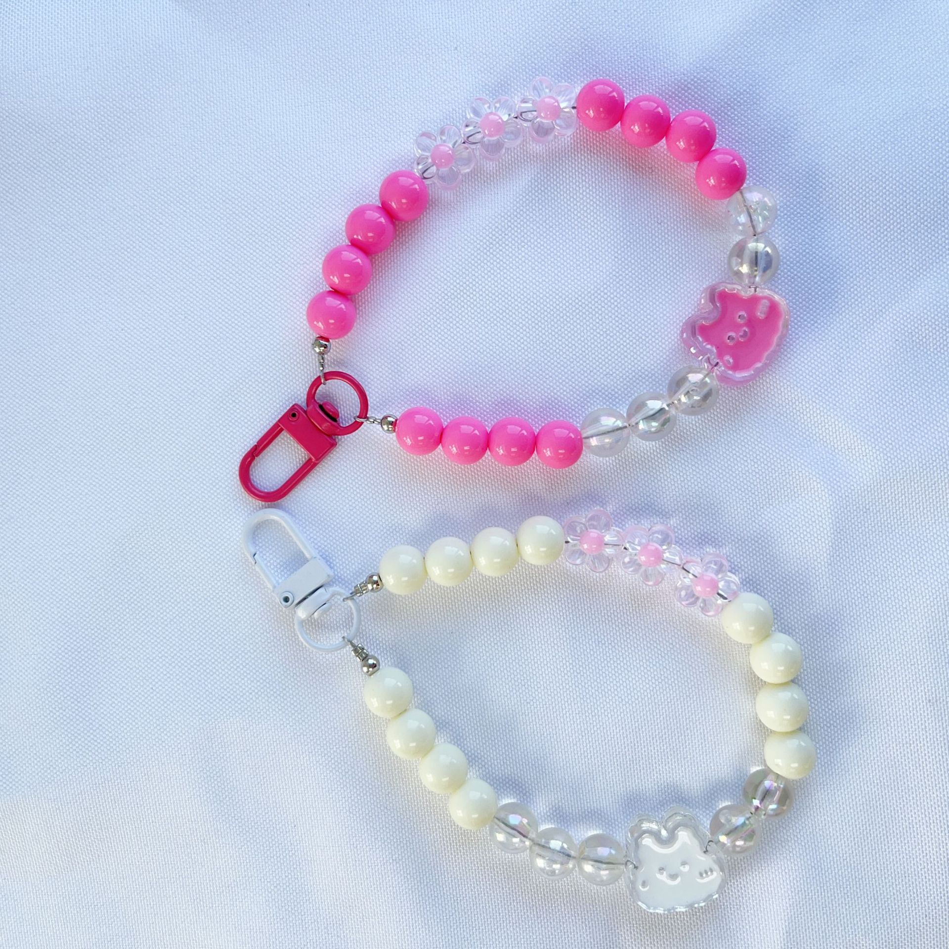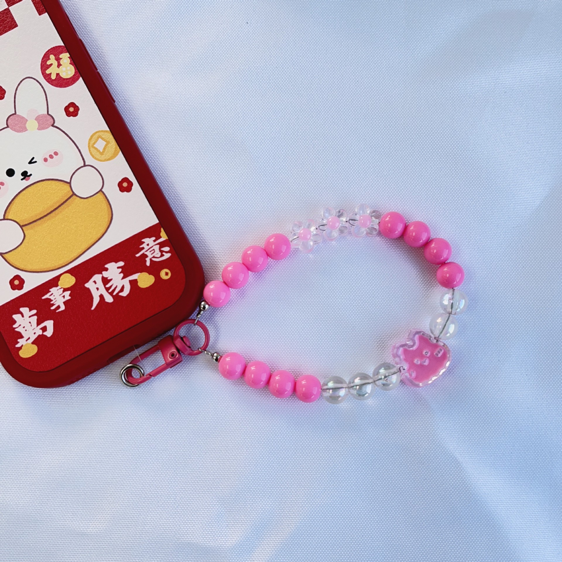 창조적 인 토끼 구슬 체인 자동차 키 체인 펜던트 이어폰 케이스 가방 전화 케이스 장식 신선한 액세서리