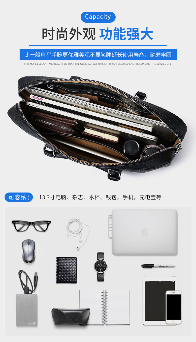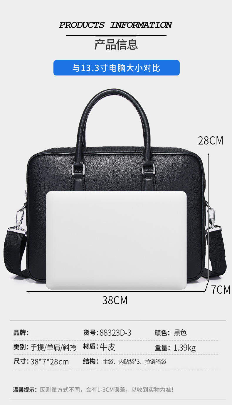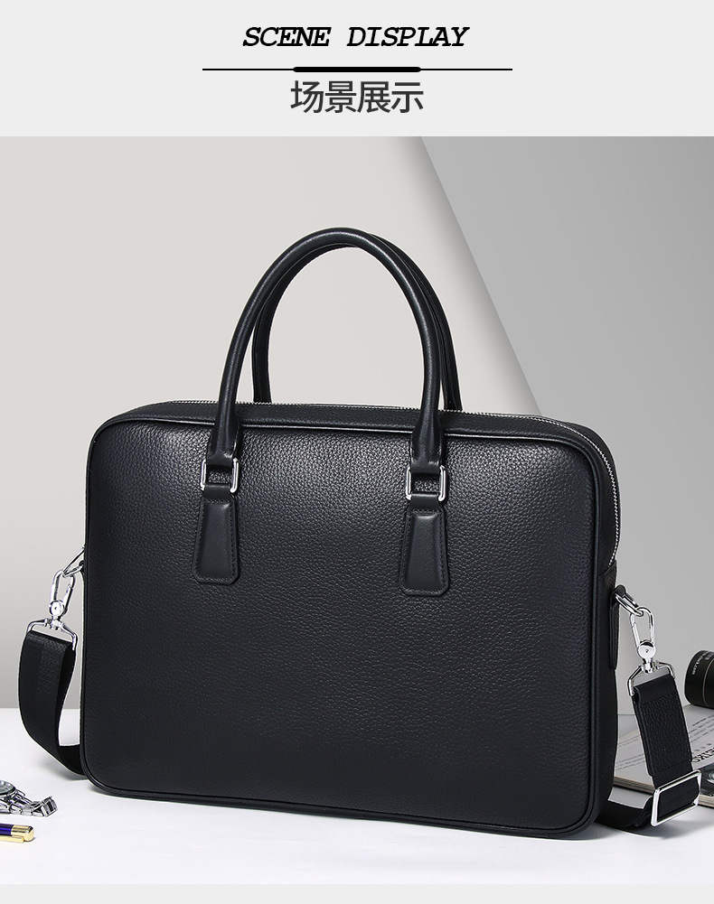 简约跨境男式公文包时尚休闲真皮电脑包商务通勤大容量男生手提包