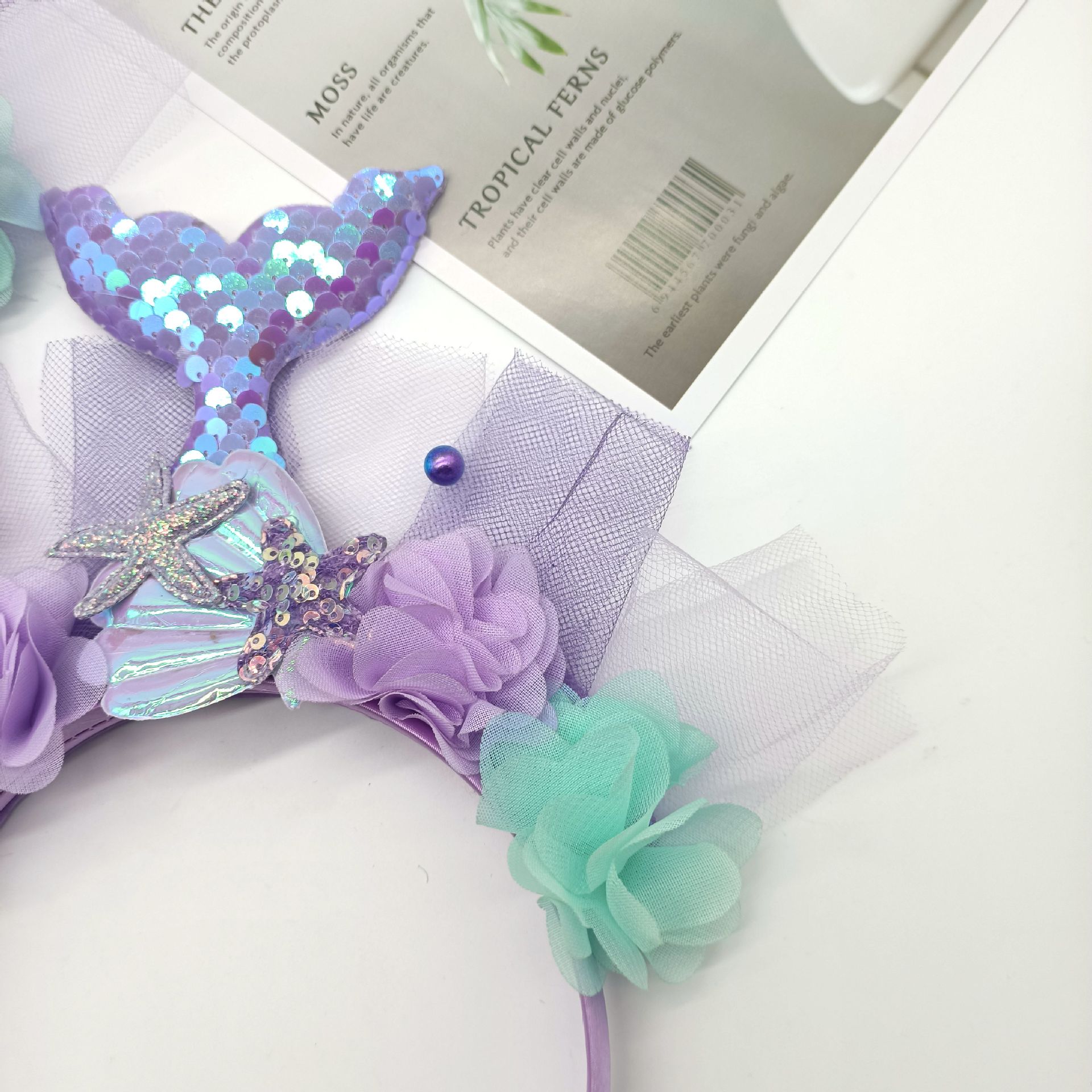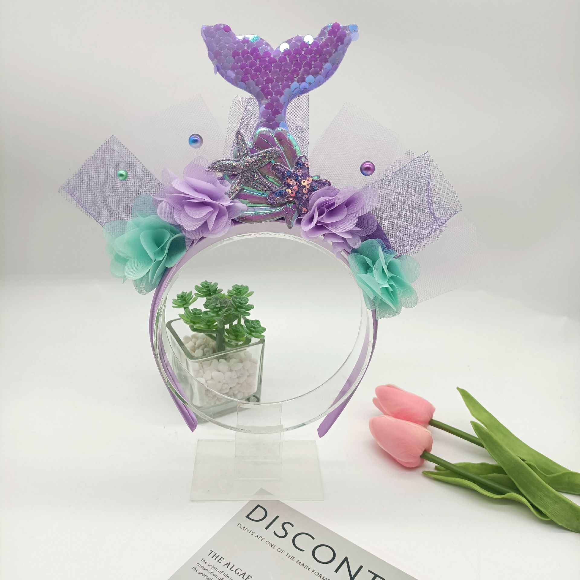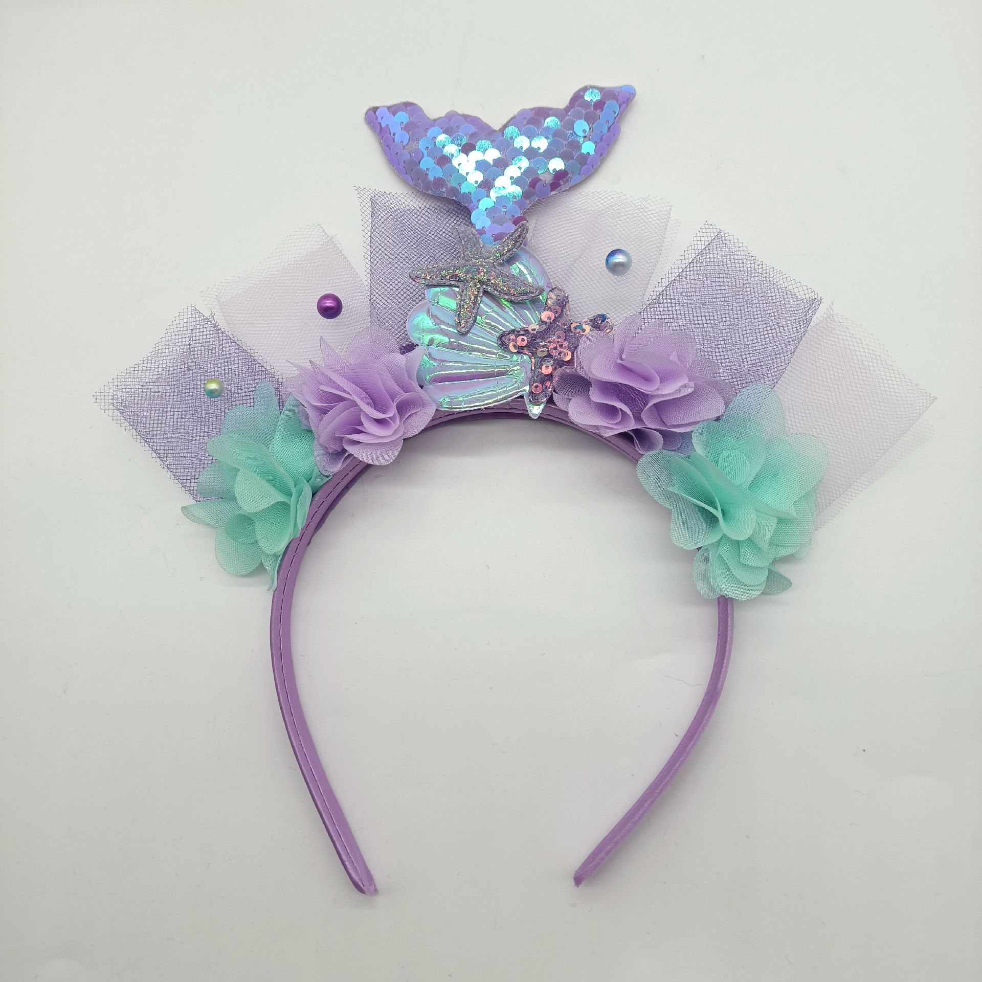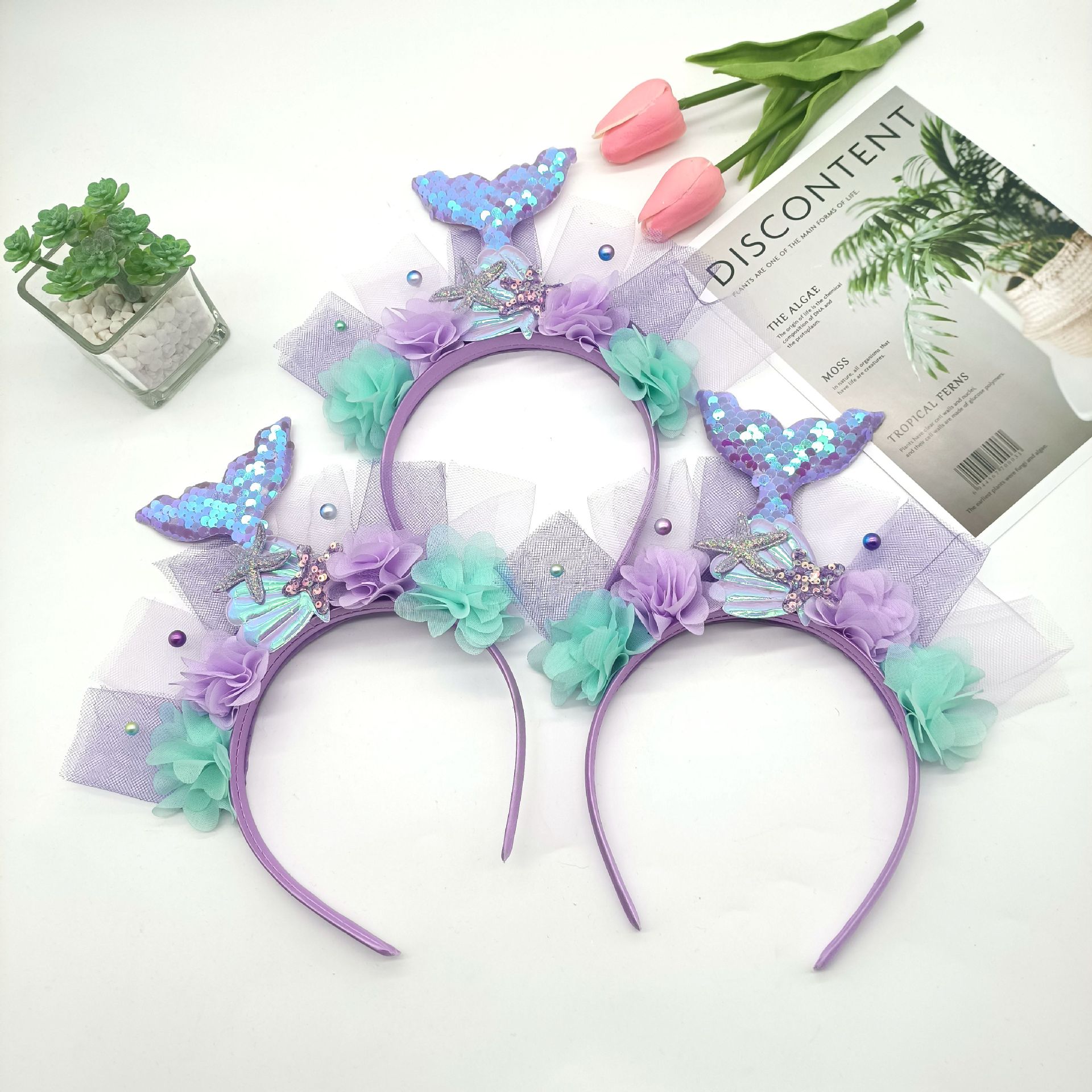 아마존 새로운 인어 메쉬 머리띠 유럽과 미국 어린이 파티 휴가 용품 머리띠 공주 헤어 액세서리 머리 장식