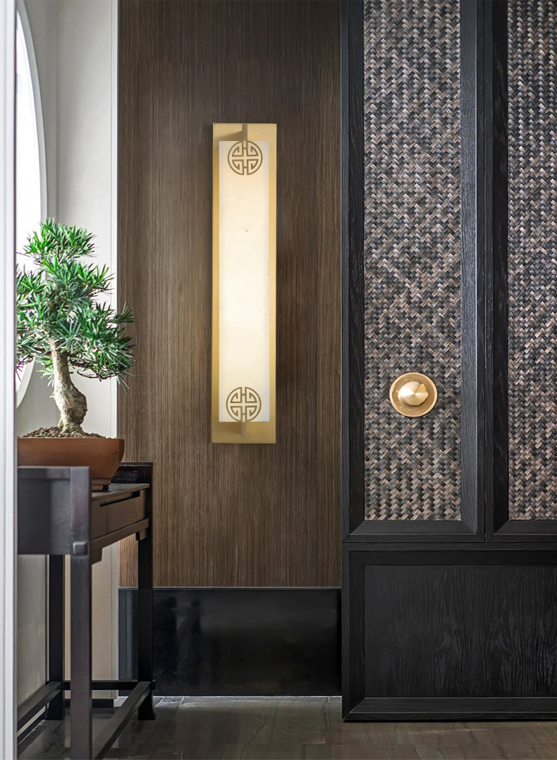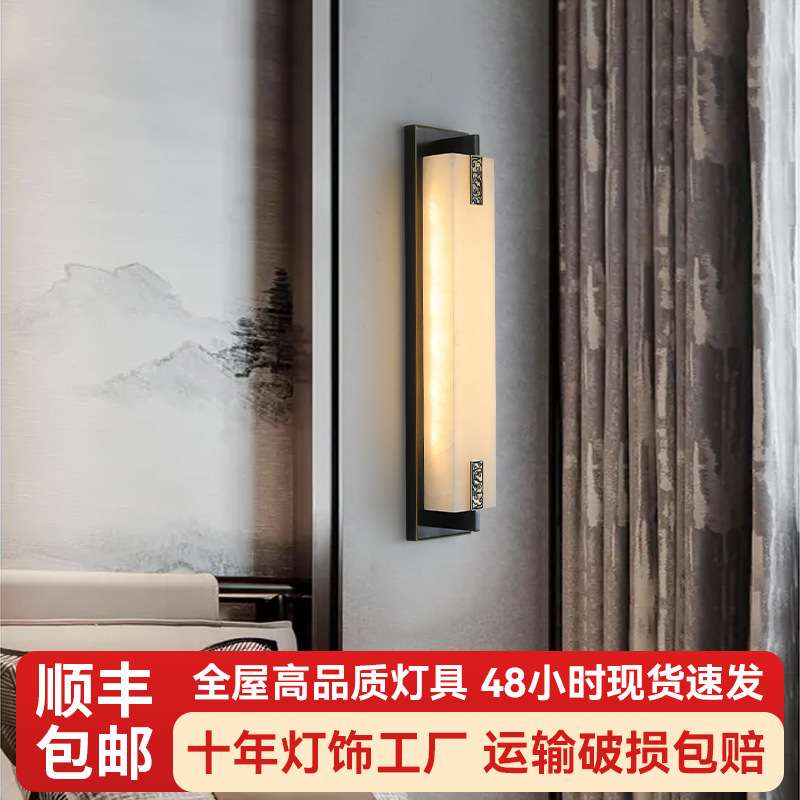 새로운 중국 스타일의 구리 벽 램프 대리석 고급 고급 거실 배경 벽 램프 현대 간단한 인터넷 유명 인사 홈 램프
