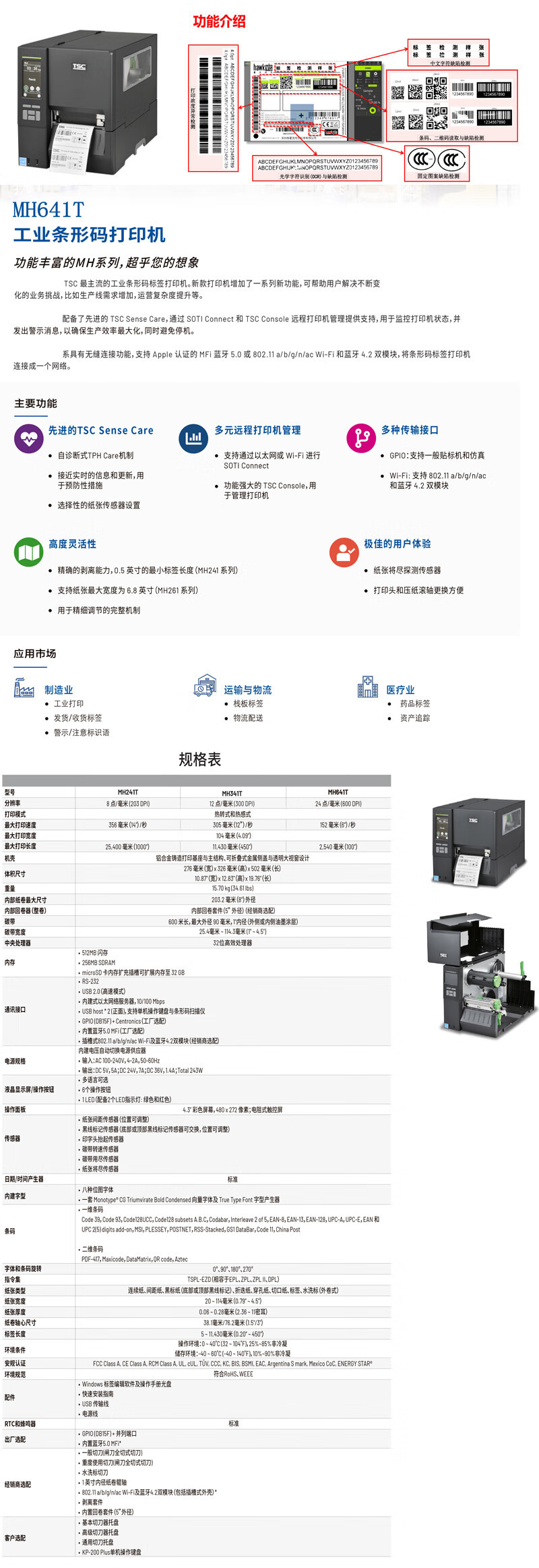 ODV 바코드 감지 검사가있는 TSC 산업 등급 600dpi 바코드 프린터 MH641T 600dpi