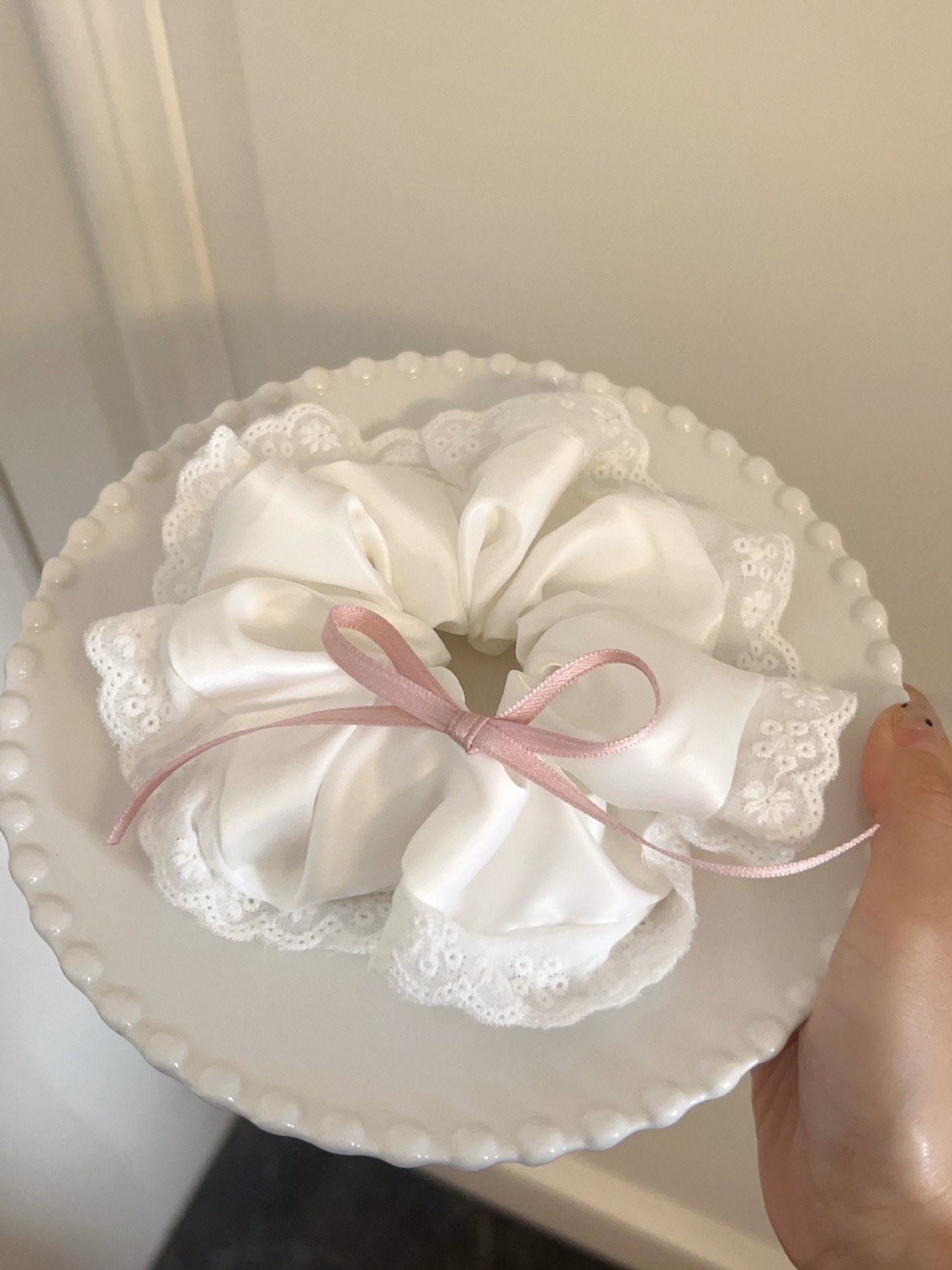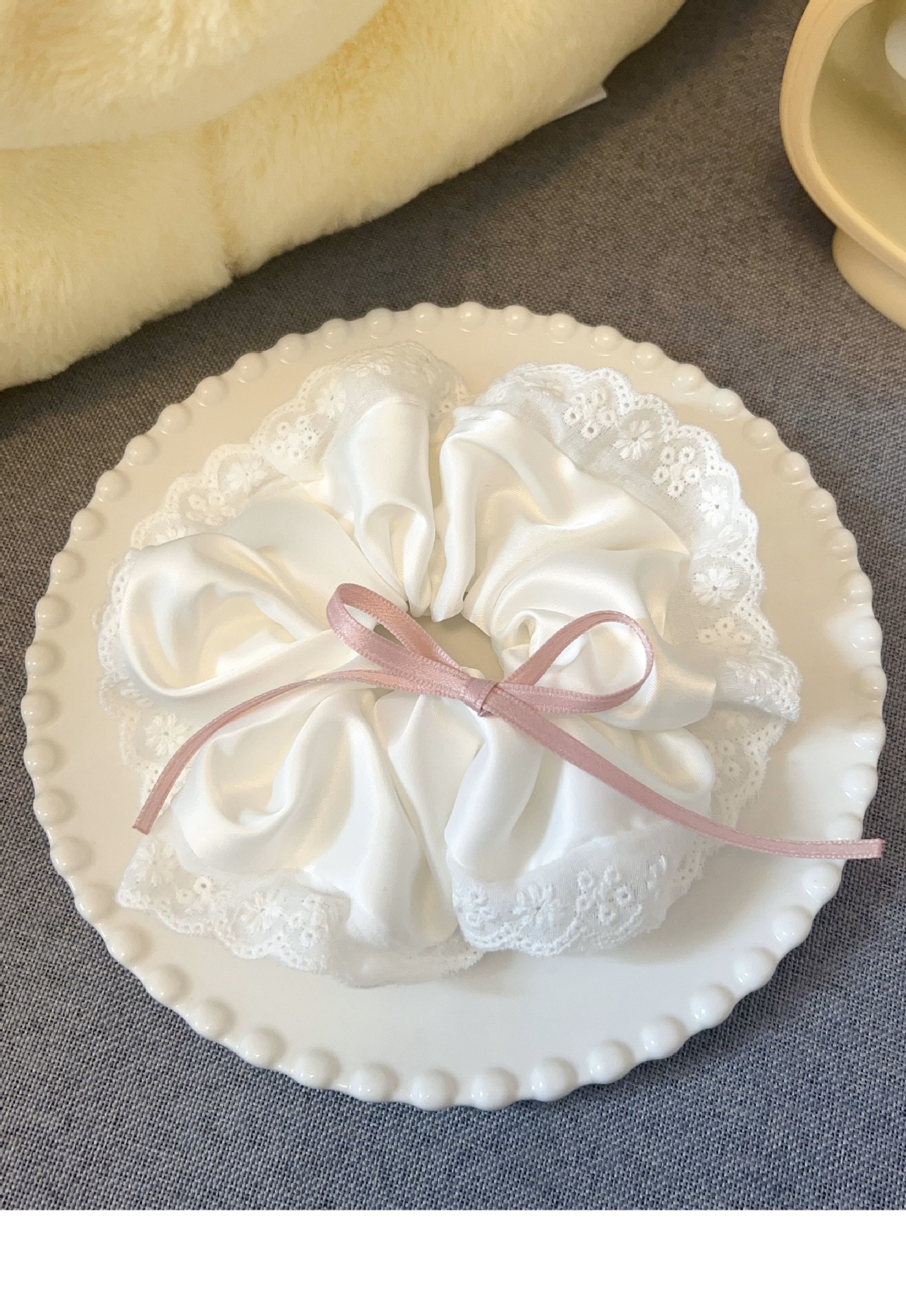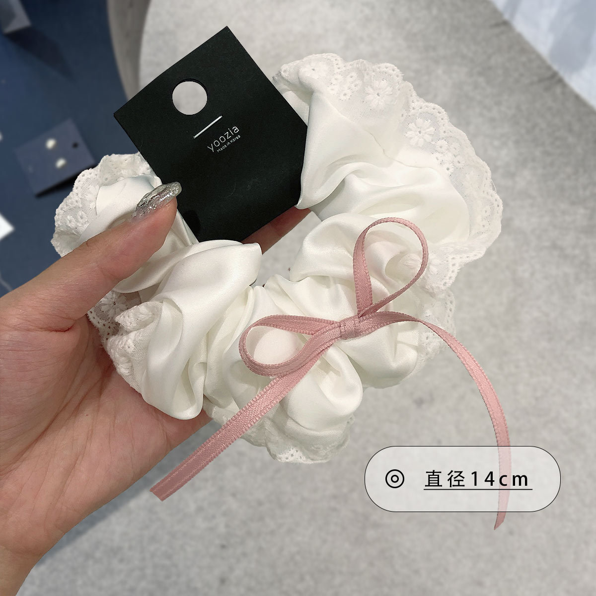 봄 새로운 부드러운 새틴 퍼프 화이트 레이스 리본 활 달콤한 소녀 대장 머리 반지 헤어 액세서리