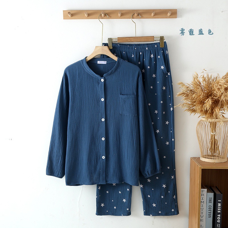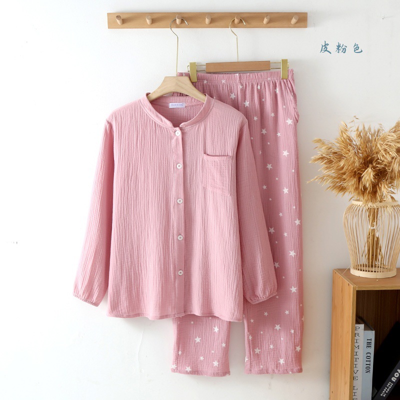 新款 越洗越软的水洗肌理绉纱纱布长袖长裤休闲家居服套装