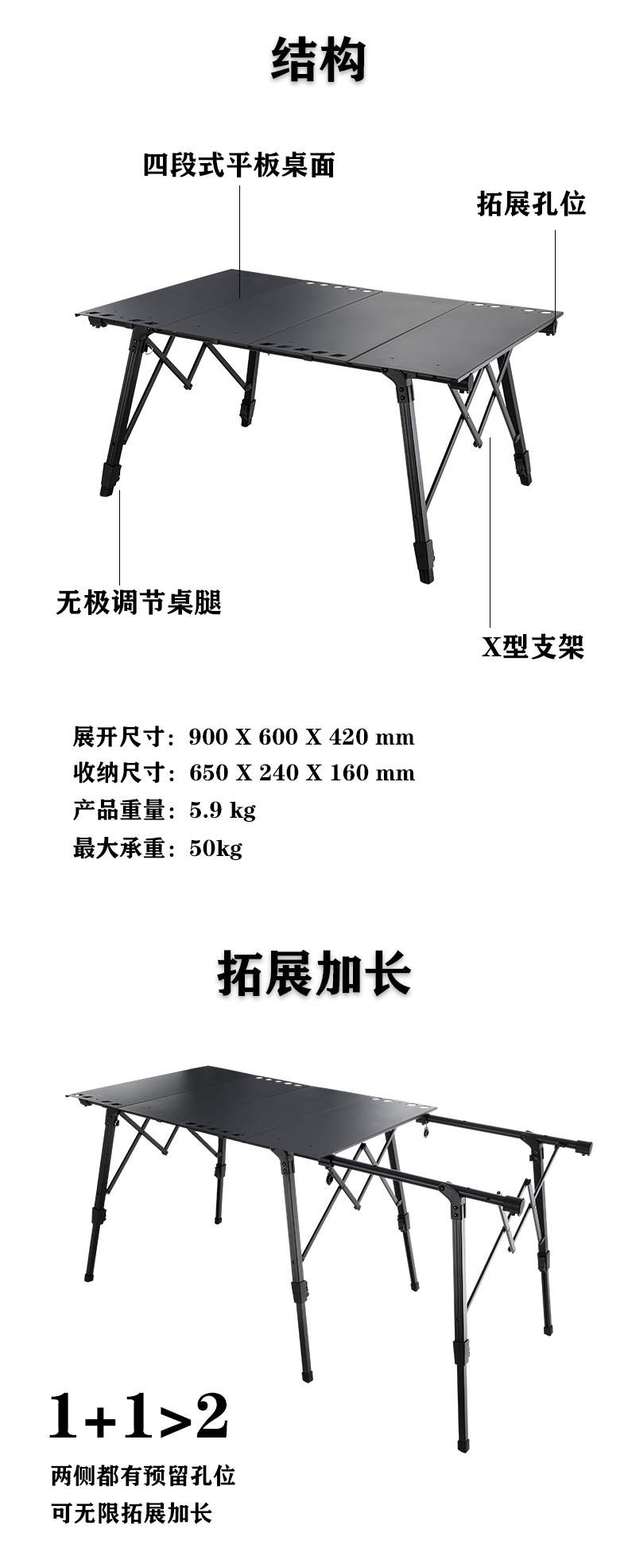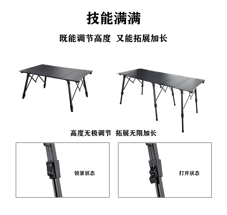 야외 캠핑 접이식 테이블 알루미늄 합금 IGT 스톨 테이블 조정 가능한 피크닉 테이블 확장 휴대용 캠핑 테이블