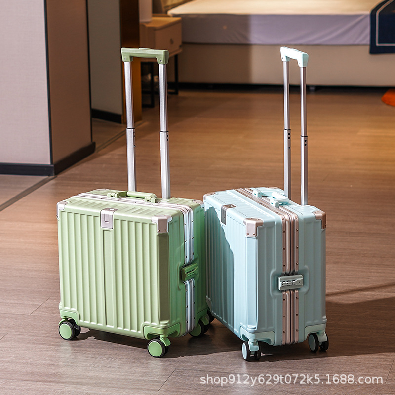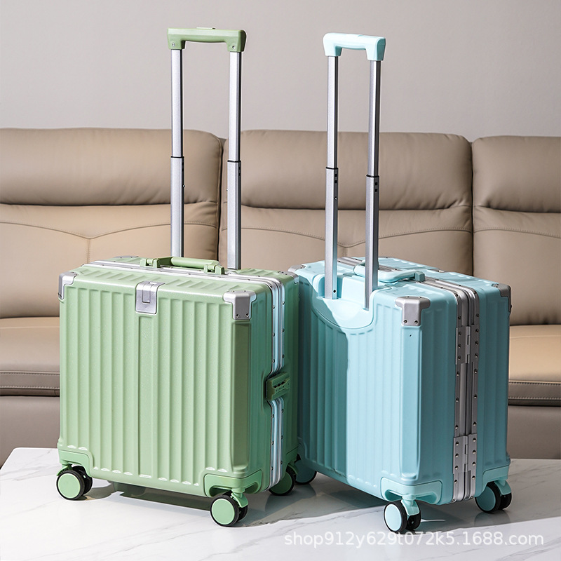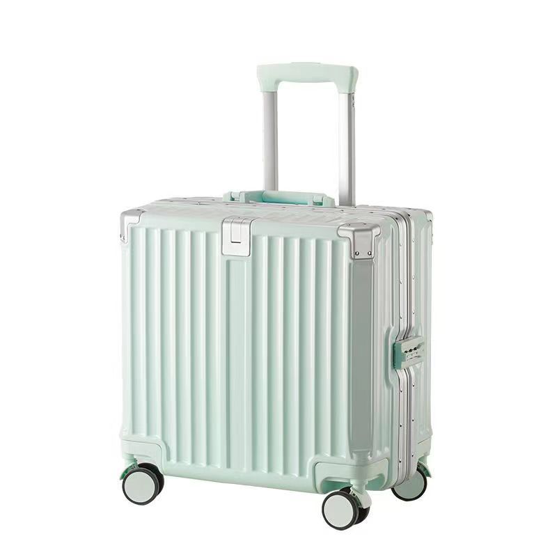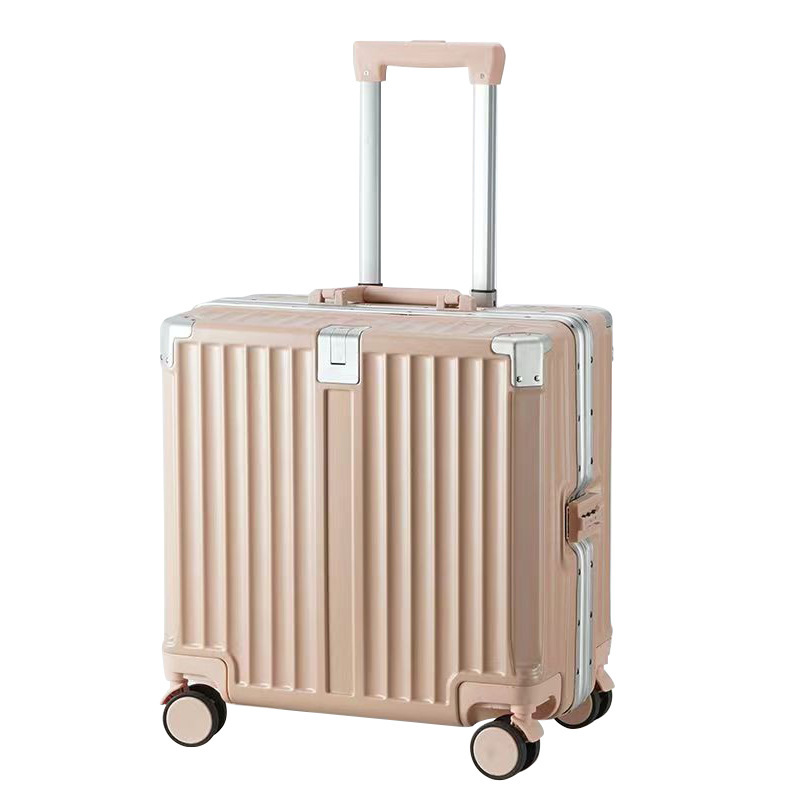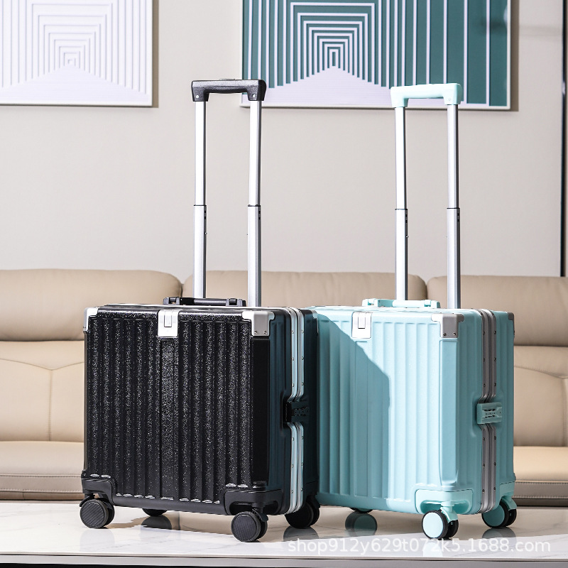여성 18 인치 소형 경량 트롤리 케이스 탑승 새로운 내구성 두꺼운 알루미늄 프레임 암호 상자스토어 가기