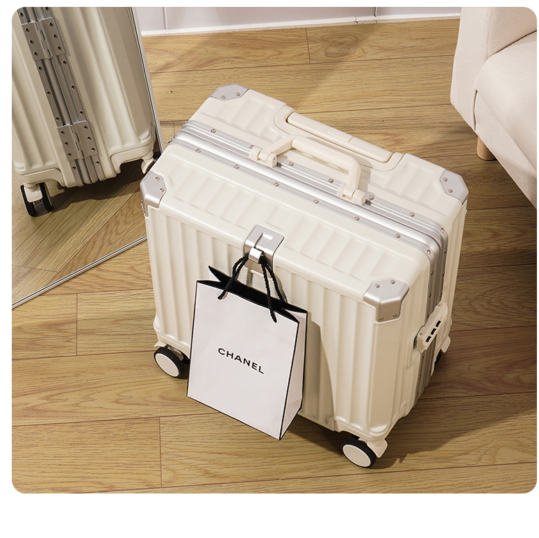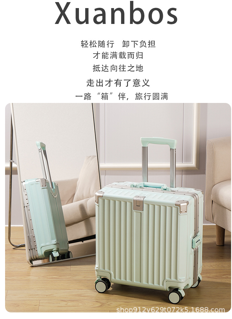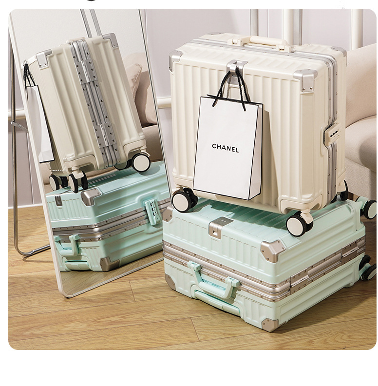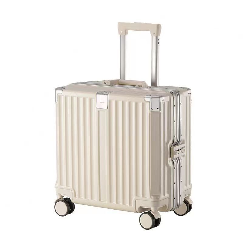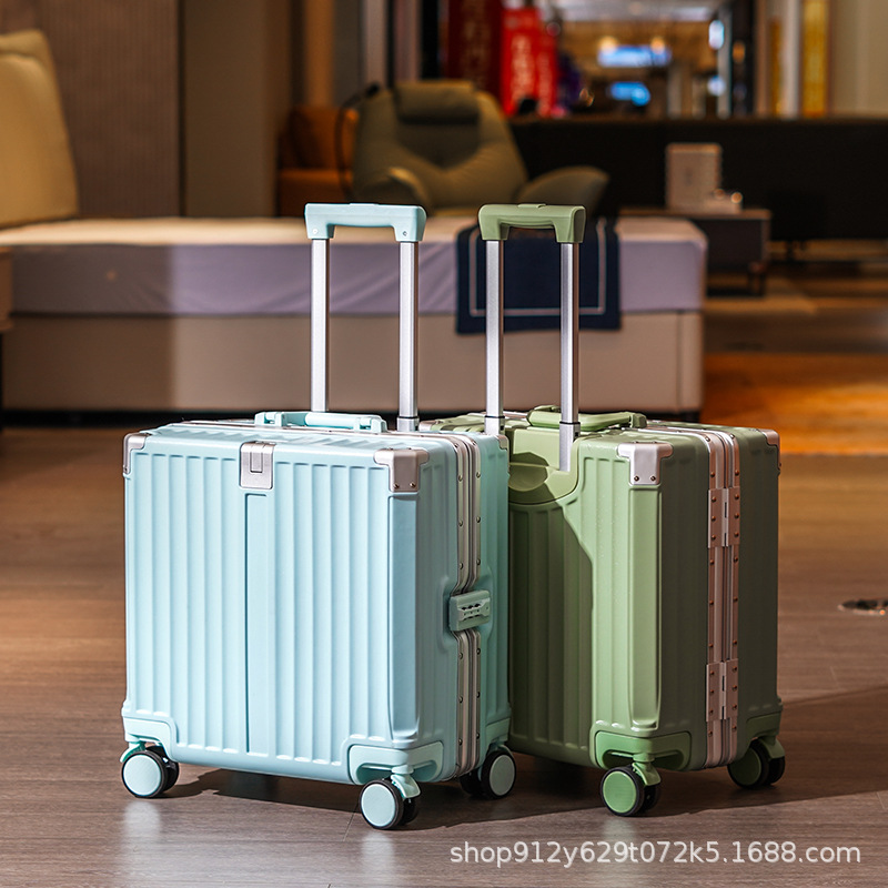 여성 18 인치 소형 경량 트롤리 케이스 탑승 새로운 내구성 두꺼운 알루미늄 프레임 암호 상자스토어 가기