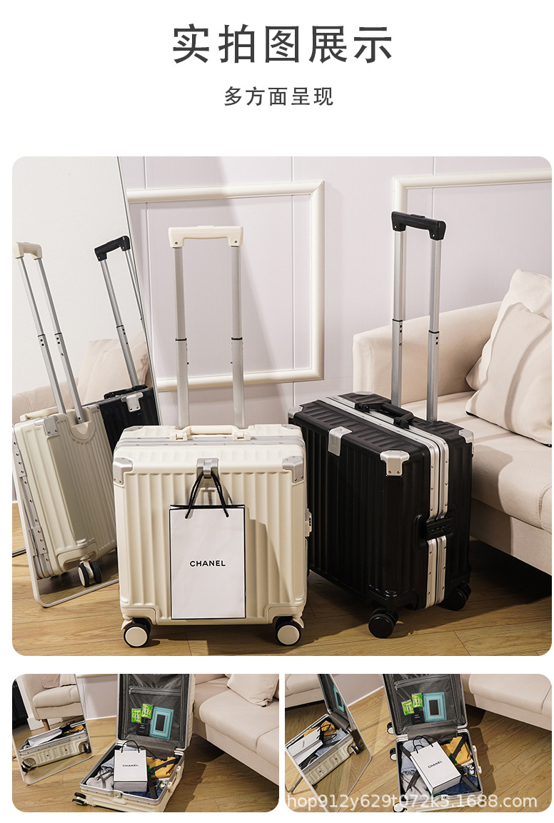 여성 18 인치 소형 경량 트롤리 케이스 탑승 새로운 내구성 두꺼운 알루미늄 프레임 암호 상자