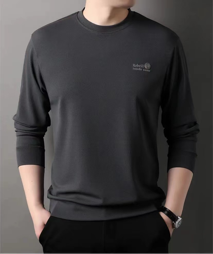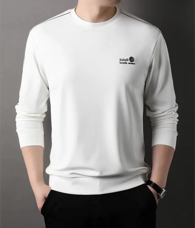 2024春秋新款男士长袖上衣色休闲时尚胸标收口绒圆领一件代发