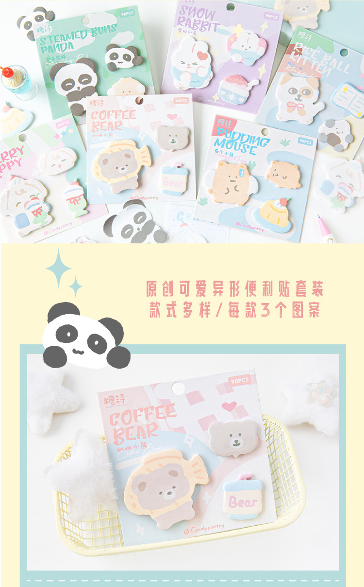 설탕시 스티커 메모 세트 식품 저장 기계 시리즈 귀여운 만화 특수 모양의 저널 메시지 노트 n 번 스티커