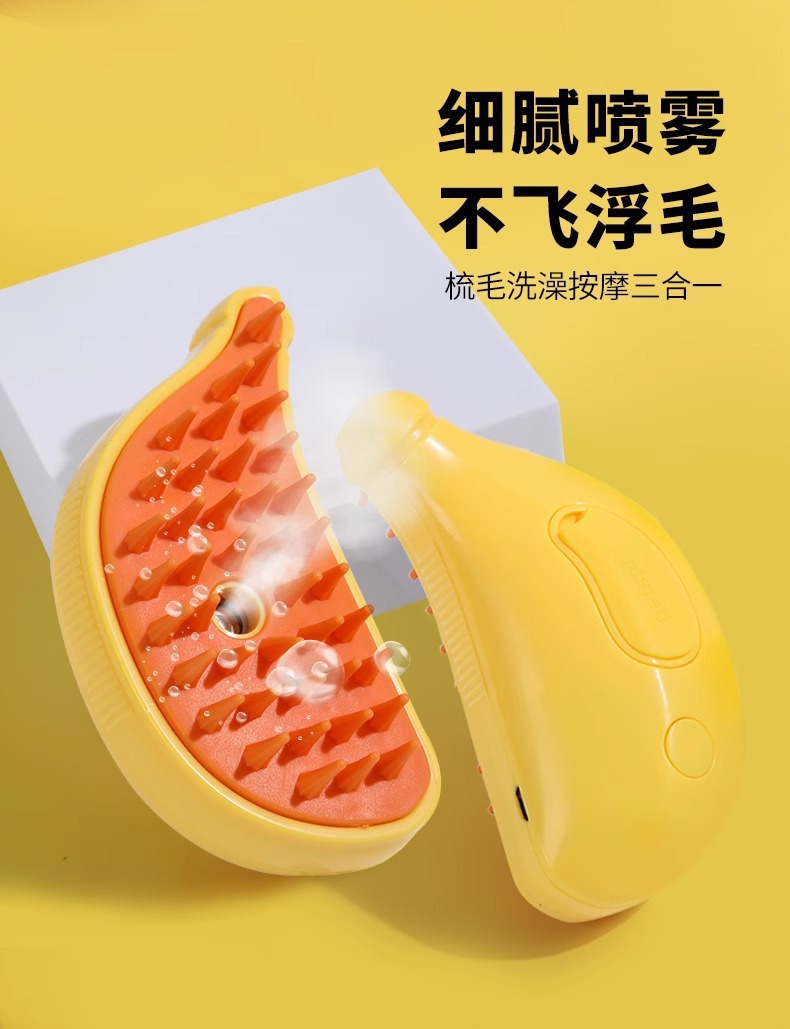 망고 바나나 원터치 스프레이 브러시 청소 및 털 제거 빗 고양이 강아지 털 날림 방지 충전식 애완동물 마사지 빗 강아지용 탈모 빗스토어 가기