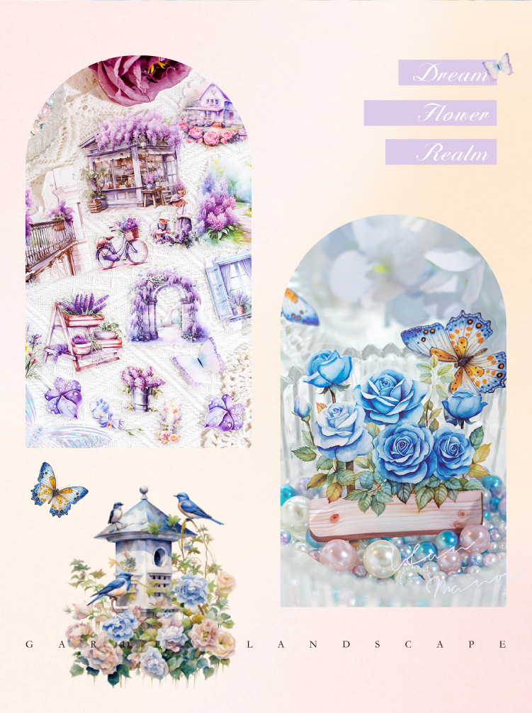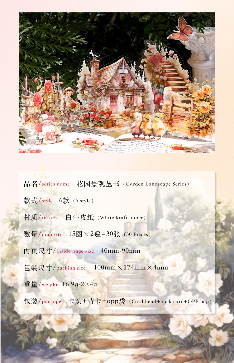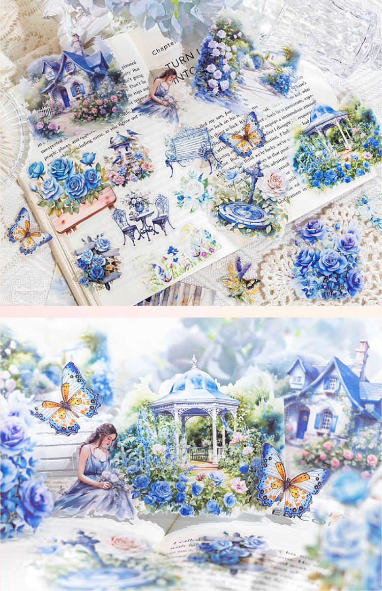 Tangshi PET 스티커 가방 정원 풍경 시리즈 빈티지 꽃 소녀 저널 풍경 장식 콜라주
