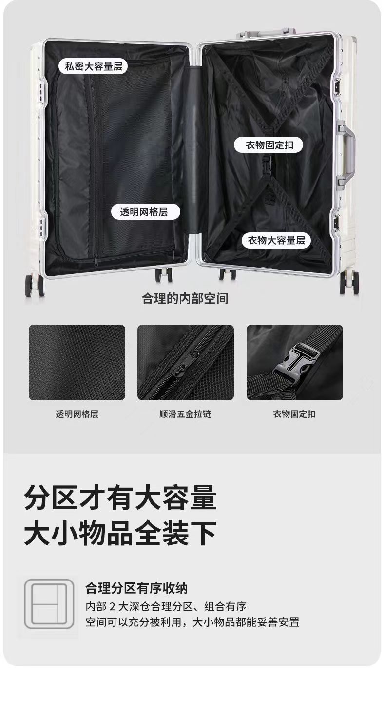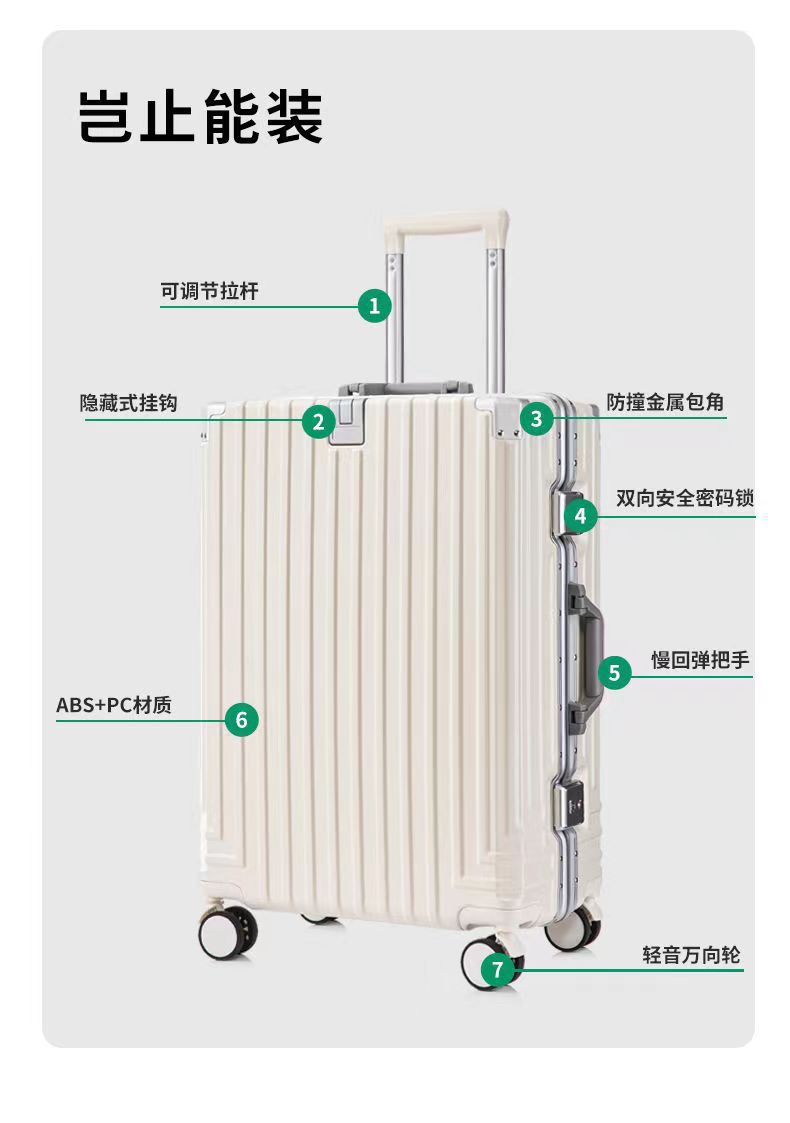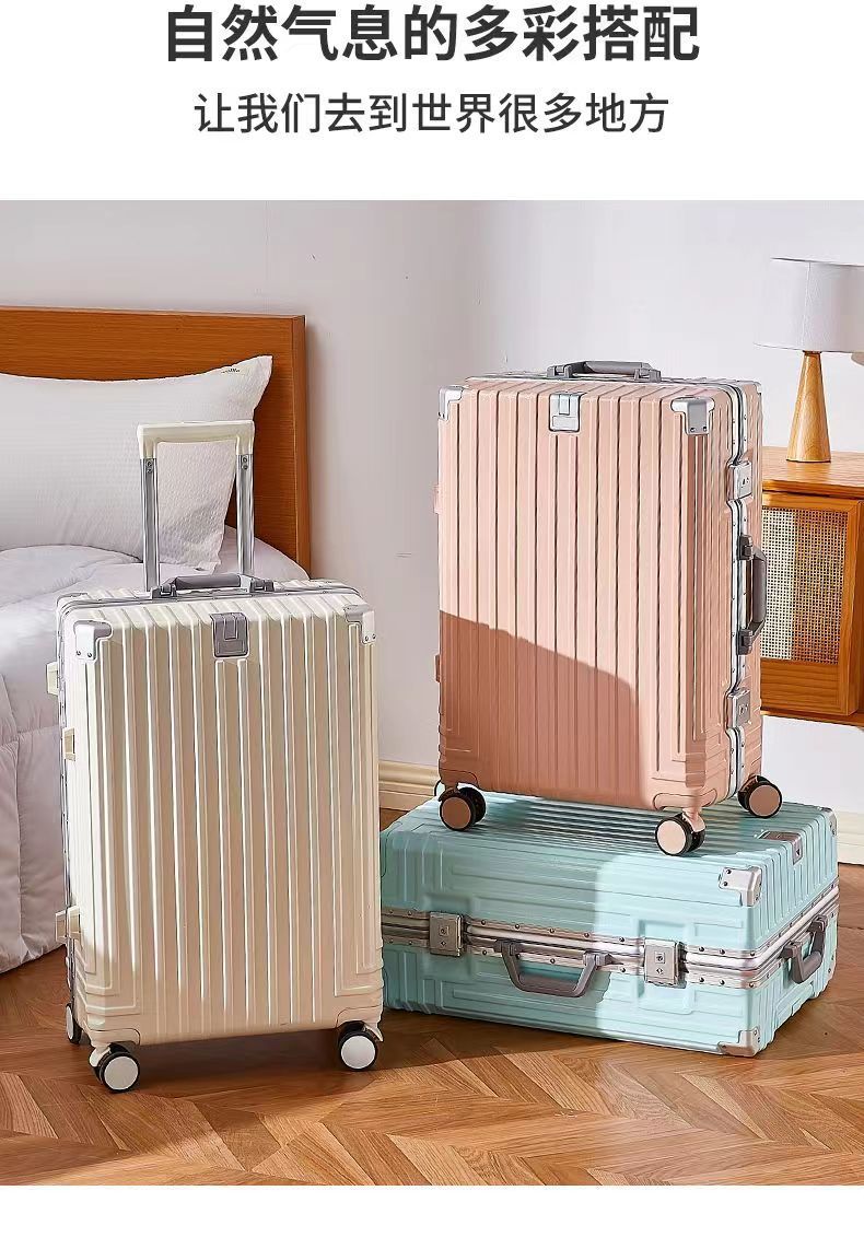 여성을위한 수하물 트롤리 케이스 2024 새로운 다기능 암호 20 가방 24 인치 알루미늄 프레임 26 탑승 케이스 단색
