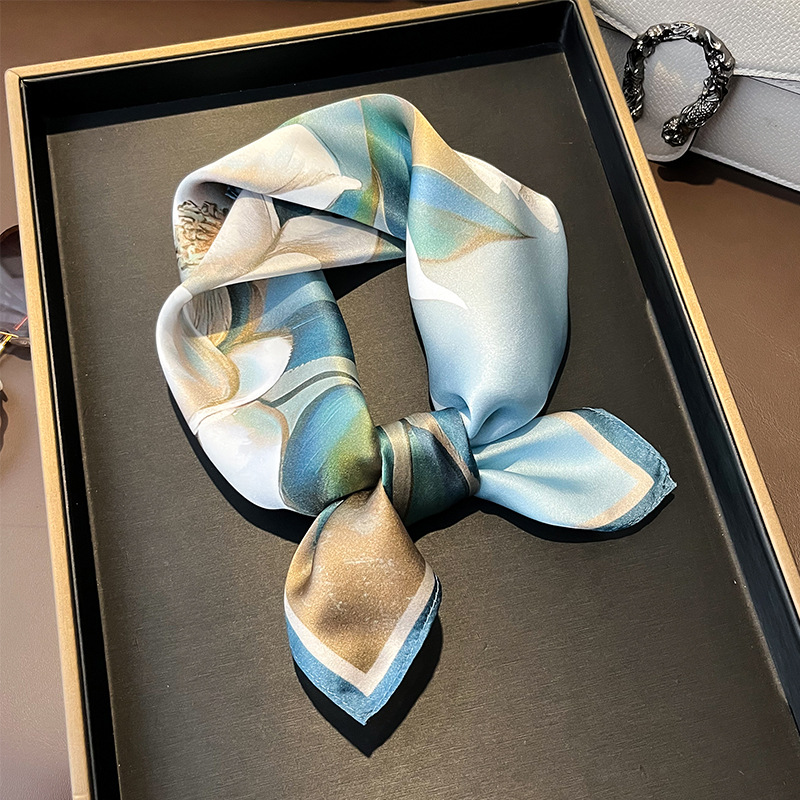새로운 중국 스타일의 연꽃 패턴 스카프 100% 뽕나무 실크 선 스크린 장식 스카프 작은 스카프