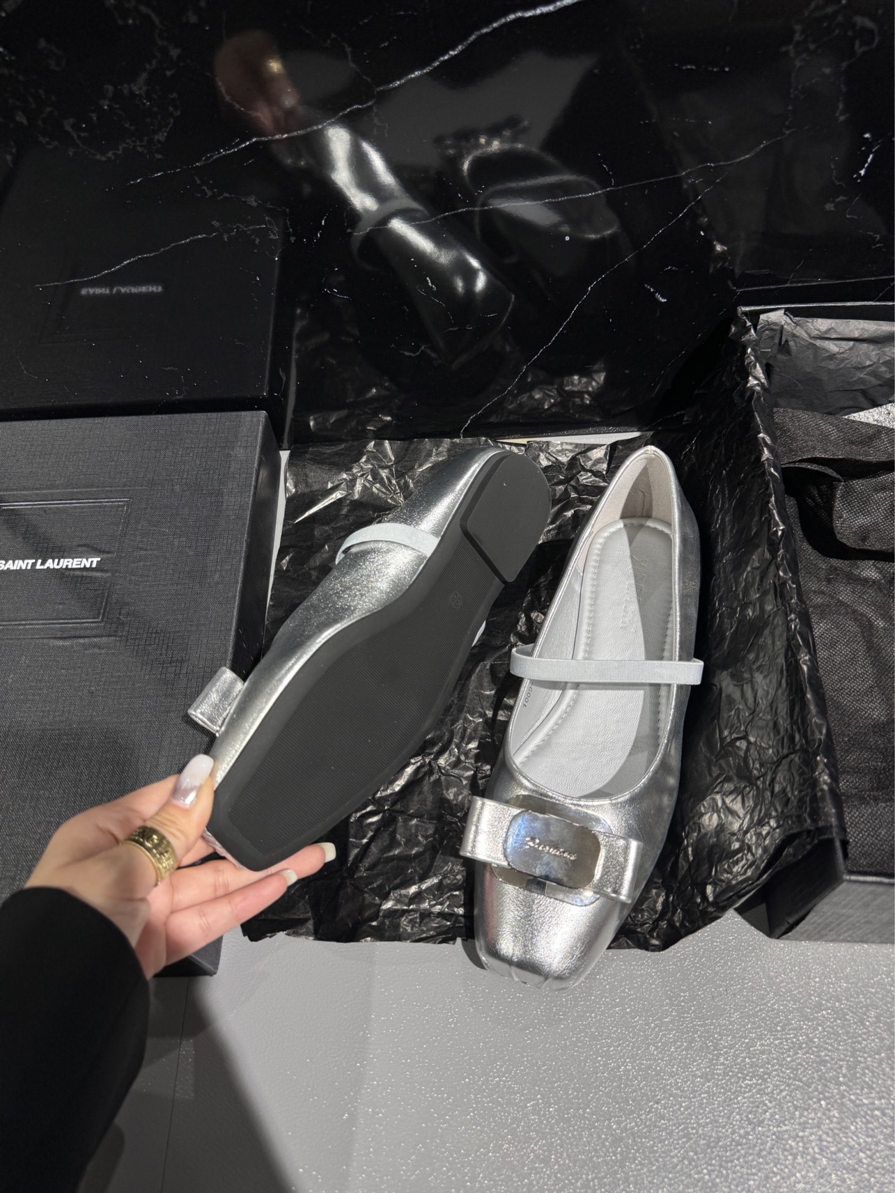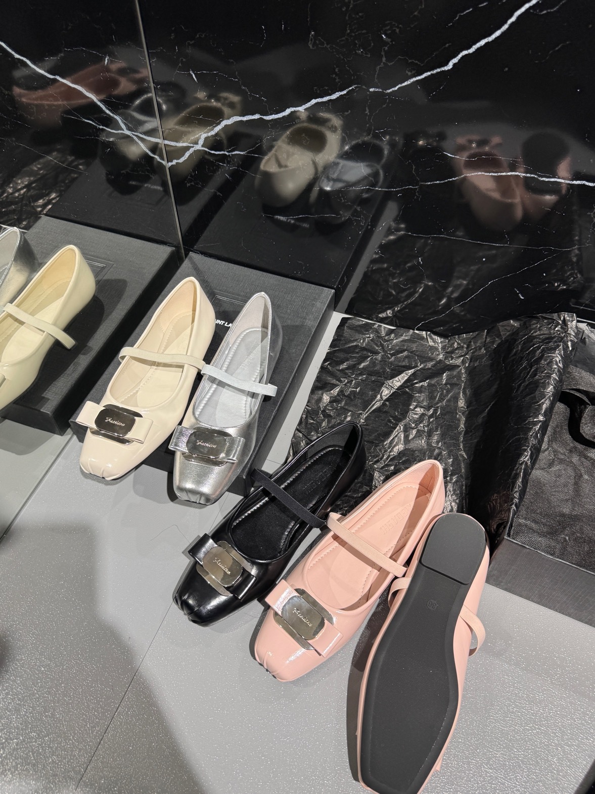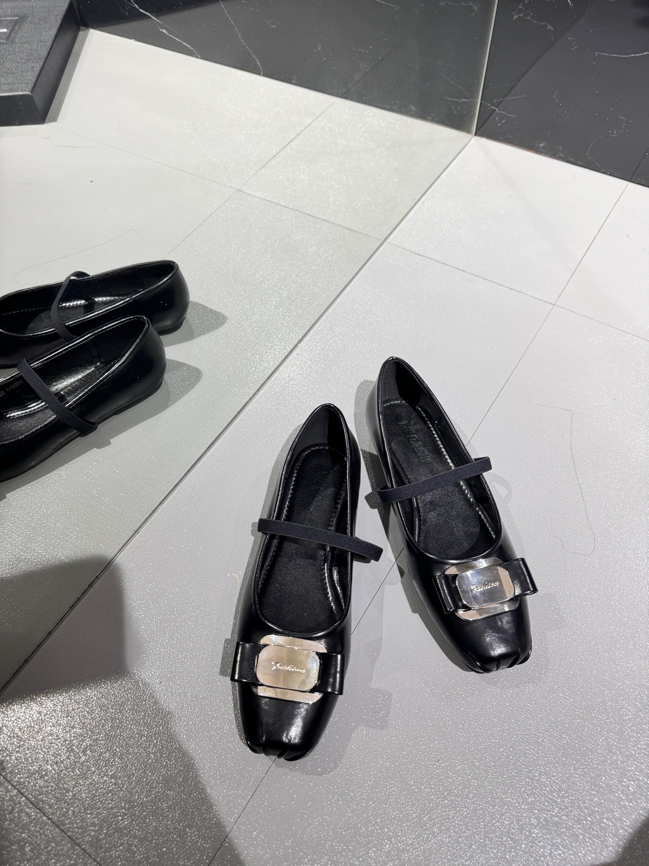 봄 2024 새로운 둥근 발가락 금속 버클 여성 신발 평평한 로우 컷 슬립 온 전문 통근 활스토어 가기
