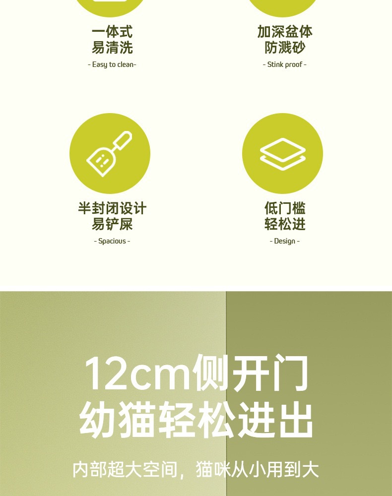 • 소형 [42CM] 욕조형 고양이 화장실 그린