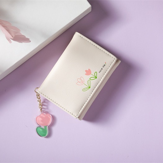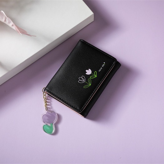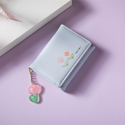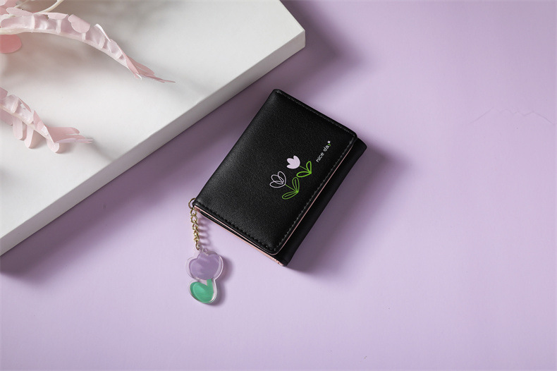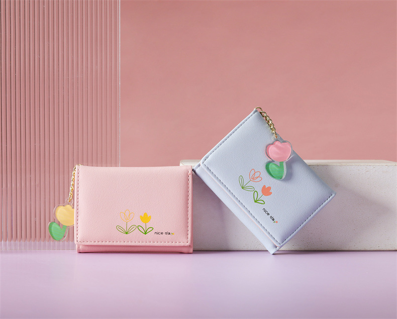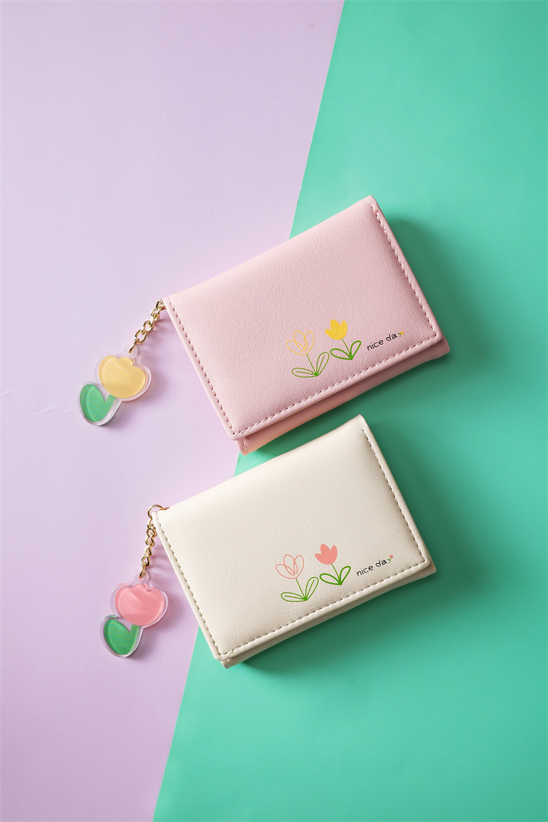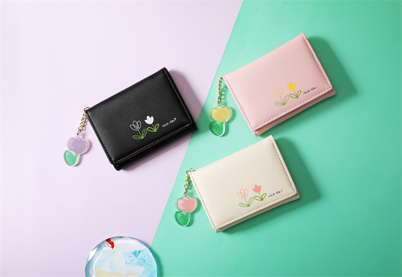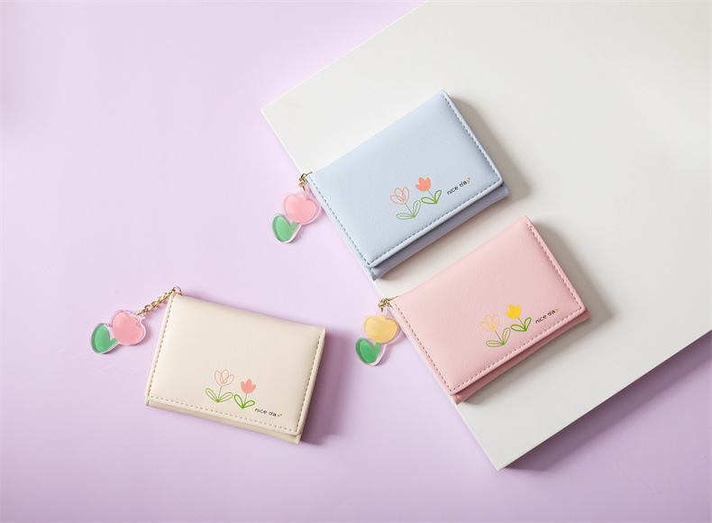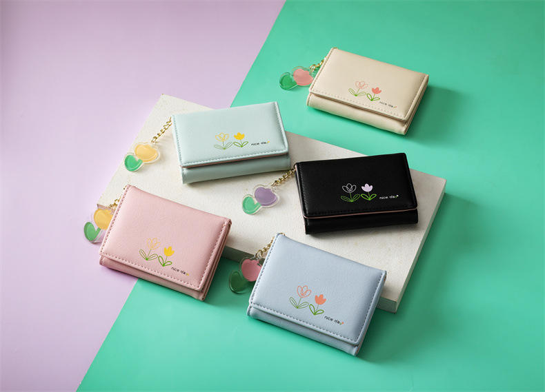 2023 새로운 간단한 귀여운 만화 학생 접는 pu 지갑 한국 스타일 3 배 짧은 여성 지갑 패션스토어 가기
