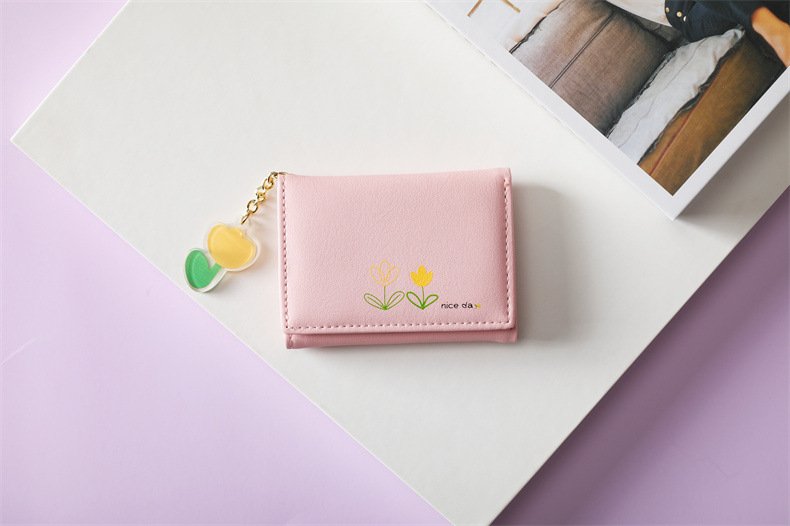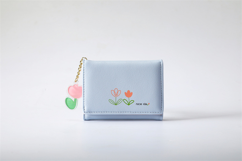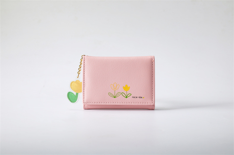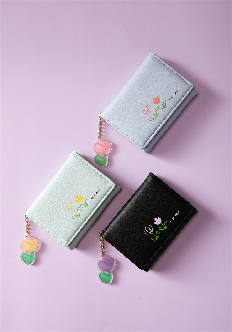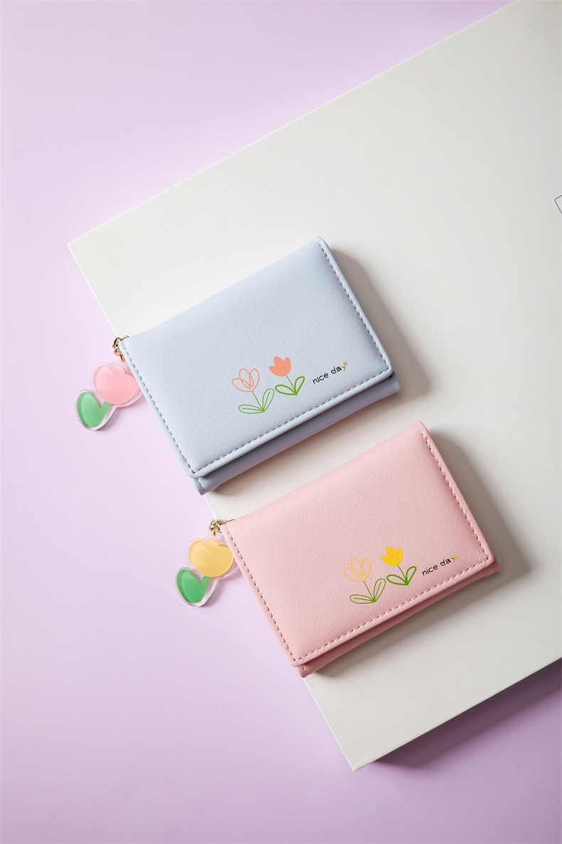 2023 새로운 간단한 귀여운 만화 학생 접는 pu 지갑 한국 스타일 3 배 짧은 여성 지갑 패션