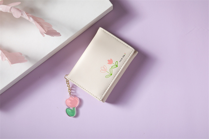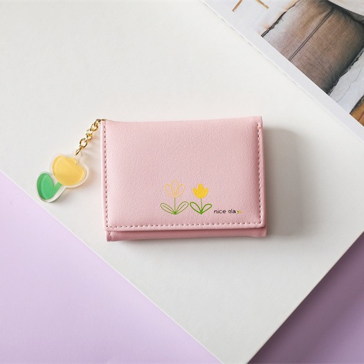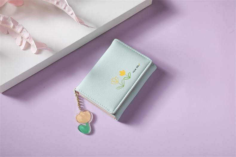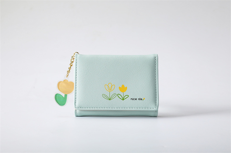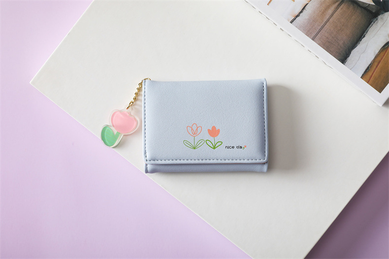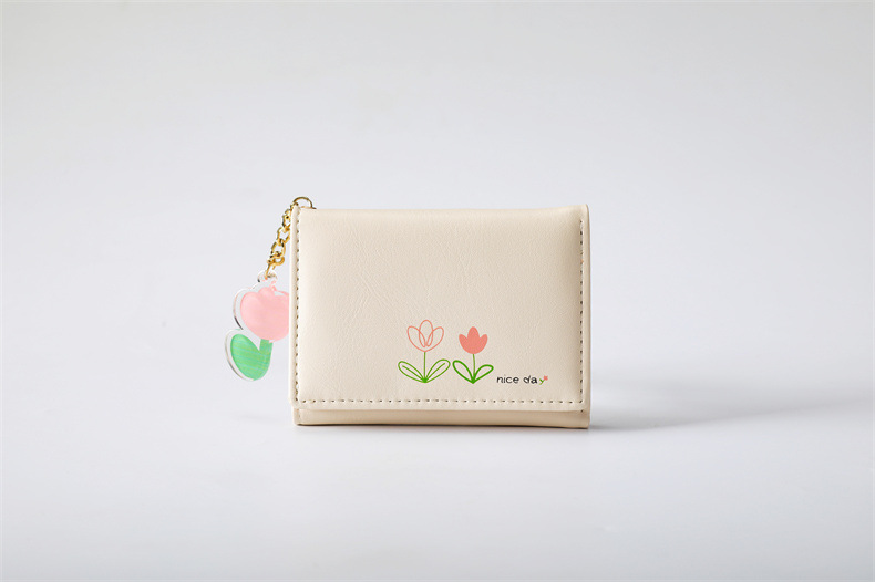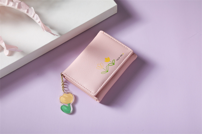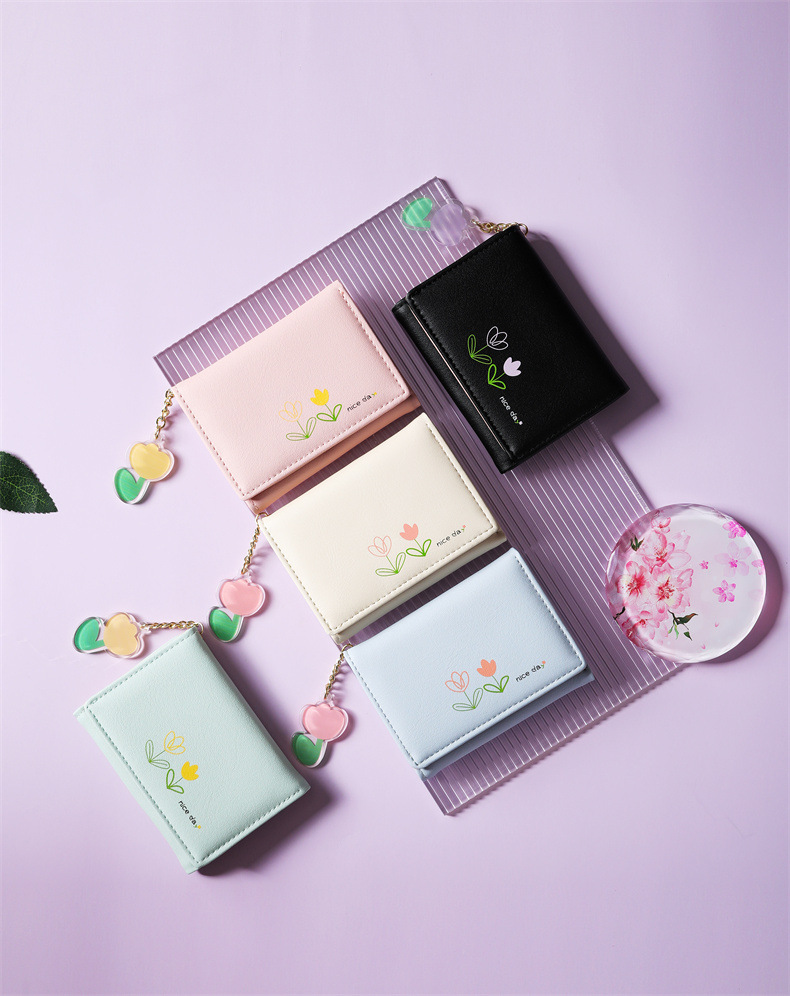 2023 새로운 간단한 귀여운 만화 학생 접는 pu 지갑 한국 스타일 3 배 짧은 여성 지갑 패션