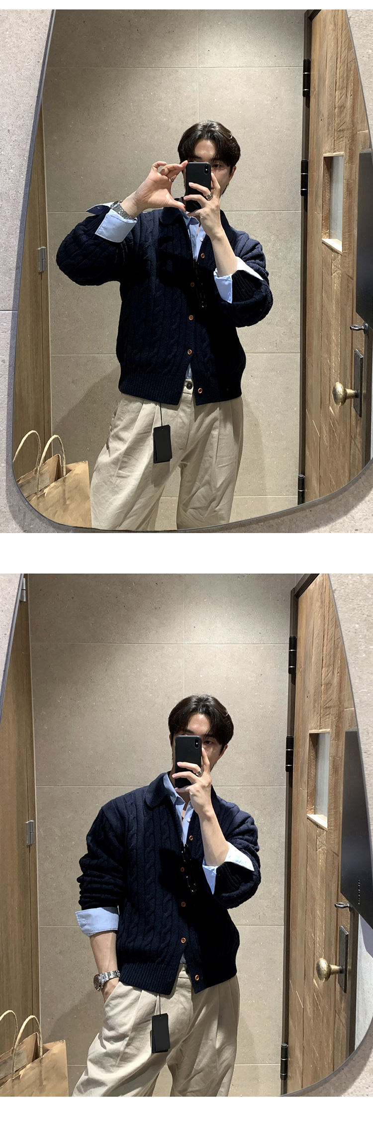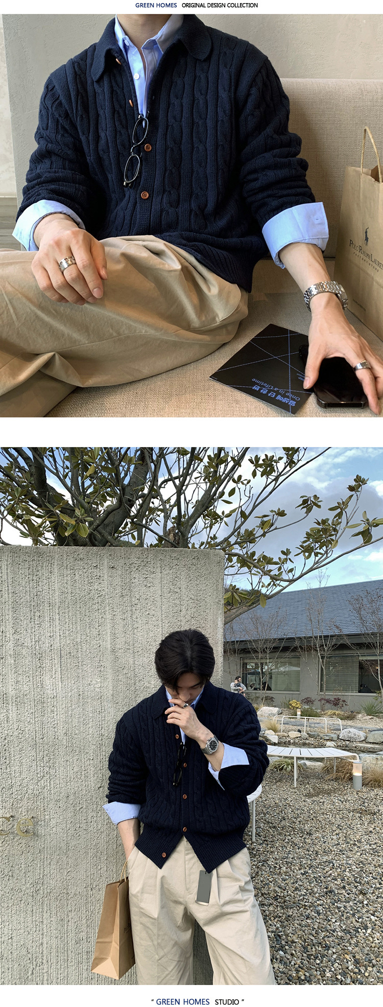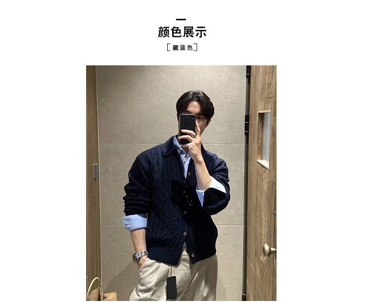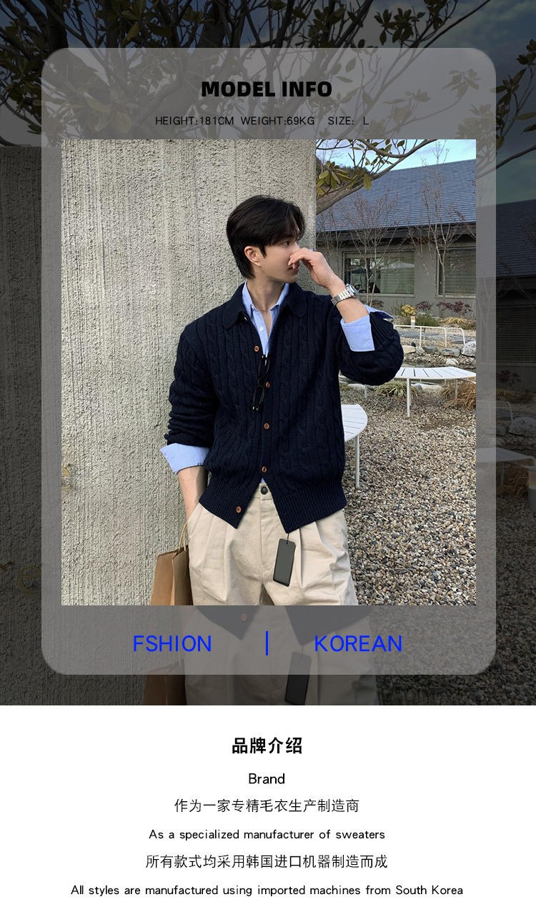 ASCLO 한국 남성 스웨터 캐주얼 느슨한 복고풍 코트 한국식 트렌디 한 고급 대마 패턴스토어 가기