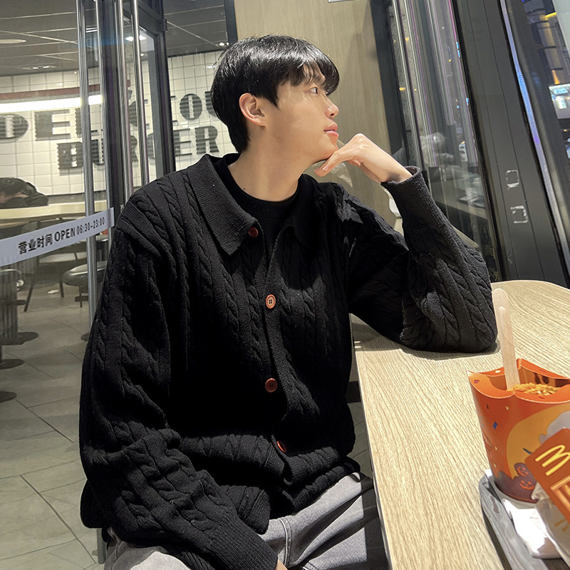 ASCLO 한국 남성 스웨터 캐주얼 느슨한 복고풍 코트 한국식 트렌디 한 고급 대마 패턴