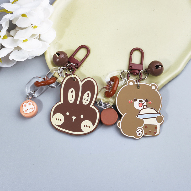 새로운 창조적 인 만화 귀여운 곰 토끼 벨 아크릴 키 체인 펜던트 보석 책가방 교수형 선물