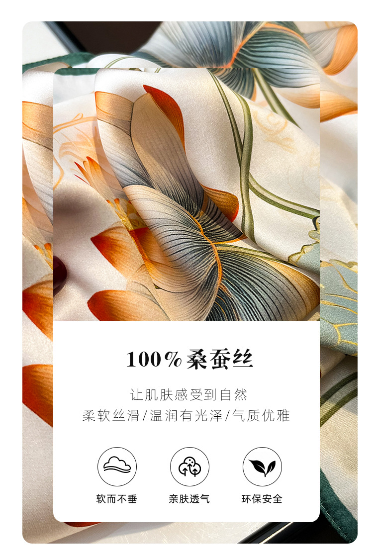 핑크 로터스 실크 스카프 100% 뽕나무 실크 여성용 작은 사각형 스카프 서양식 선물 어머니 스카프