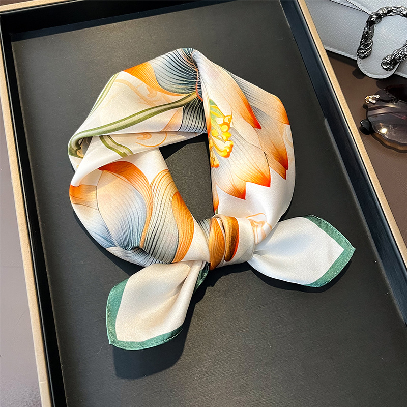 핑크 로터스 실크 스카프 100% 뽕나무 실크 여성용 작은 사각형 스카프 서양식 선물 어머니 스카프스토어 가기