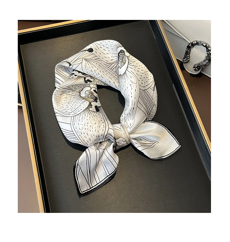 레트로 샤넬 스타일 블랙 스케치 실크 스카프 작은 사각형 스카프 여성의 봄과 가을 뽕나무 실크 스카프 얇은