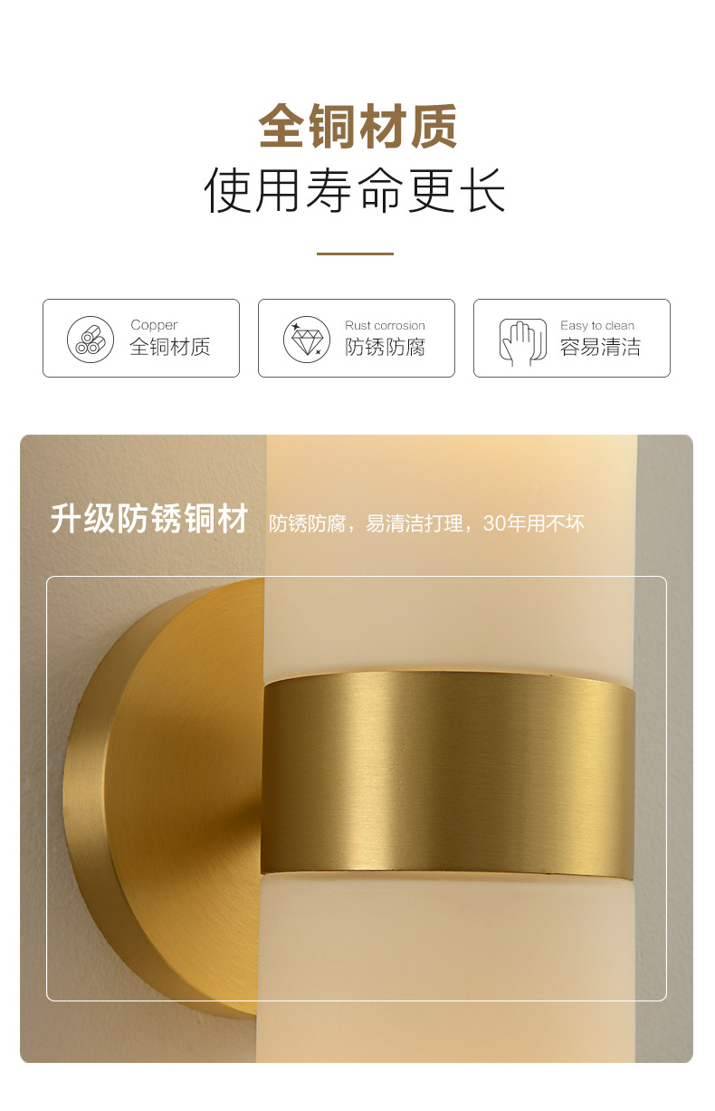 미국식 전체 구리 침실 머리맡 벽 램프 빛 럭셔리 통로 거실 배경 벽 램프 간단한 현대 계단 거울 전면 조명