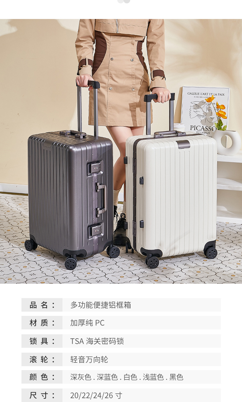 PC 여행 탑승 상자 남자 26 인치 트롤리 케이스 유니버설 휠 다기능 대용량 수하물 코드 박스스토어 가기