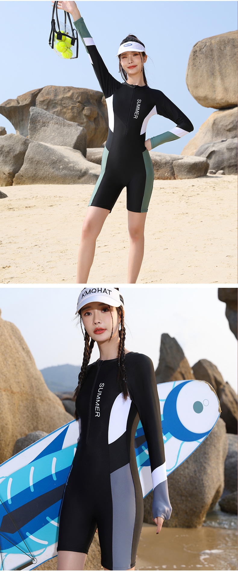 여성을위한 하이 엔드 긴팔 태양 방지 복서 원피스 수영복 여성 여름 여성 하이 엔드 수영복 서핑 다이빙 수영복스토어 가기