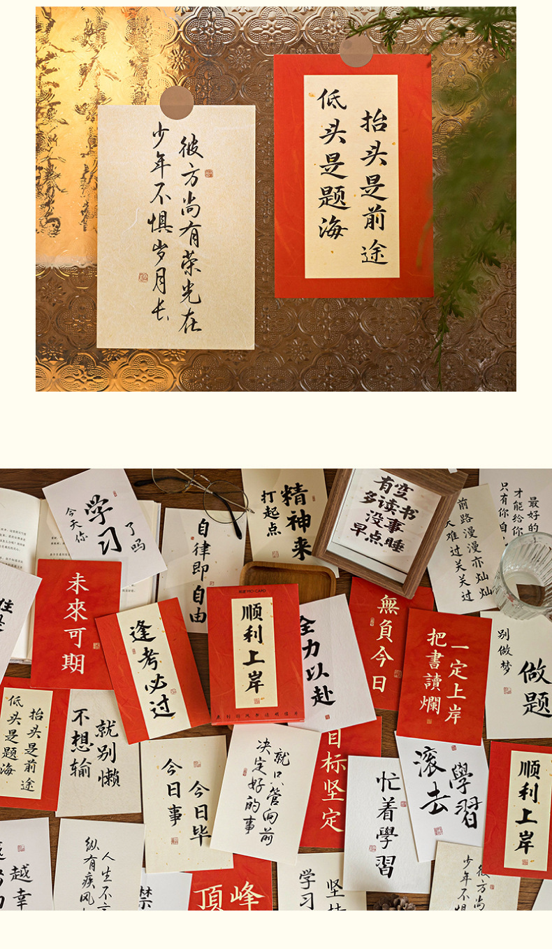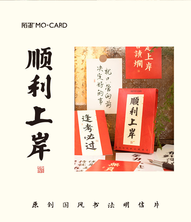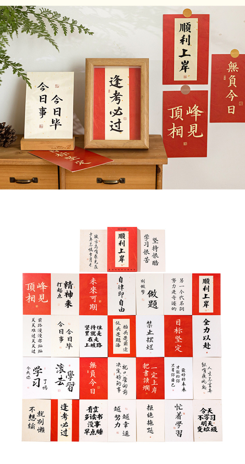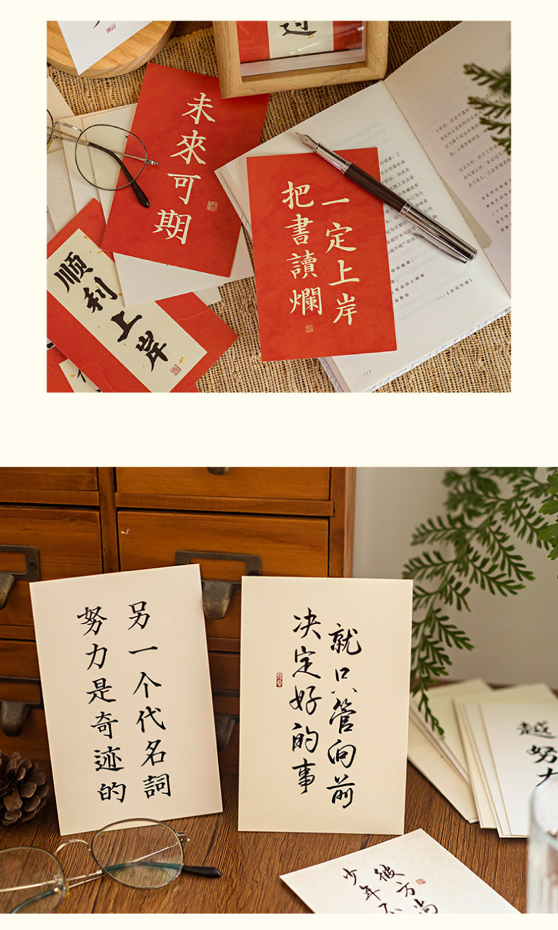 모모 중국 스타일 서예 엽서가 성공적으로 착륙 고대 스타일 축복 영감 텍스트 학생 시험 선물스토어 가기