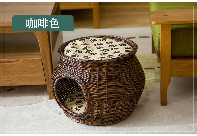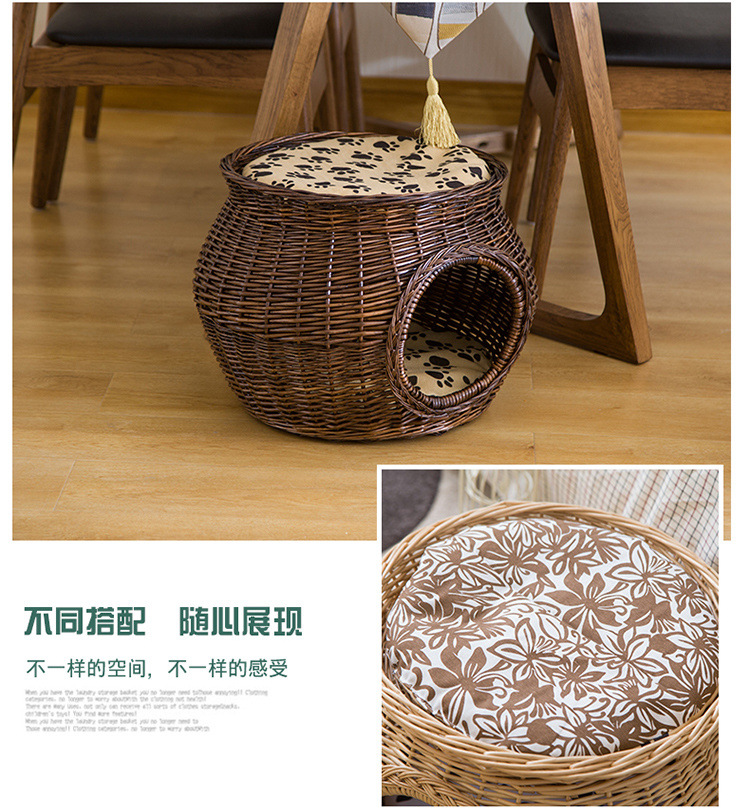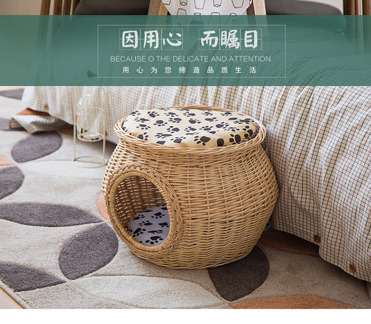 Yut 등나무 고양이 둥지 여름 시원한 개집 윌로우 고양이 집 고양이 집 빌라 작은 개 둥지 사계절 유니버설스토어 가기