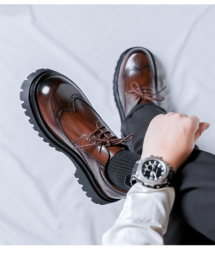 가죽 신발 남성 플랫폼 높이 증가 캐주얼 신발 영국 스타일 가죽 신발 여름 캐주얼 다크 브라운 웨딩 신랑 신발 1808-R