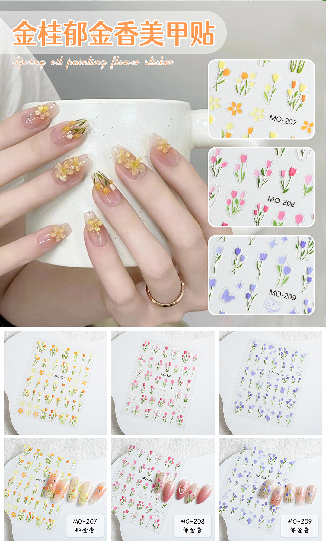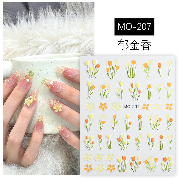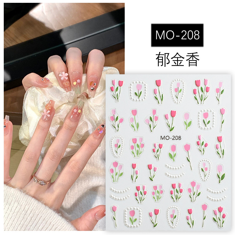튤립 스티커 매니큐어 2024 새로운 구호 신선한 꽃 노란색 핑크 보라색 네일 쥬얼리 스티커 인기 온라인스토어 가기