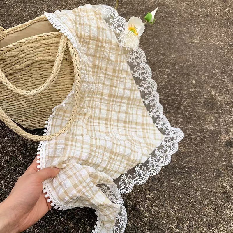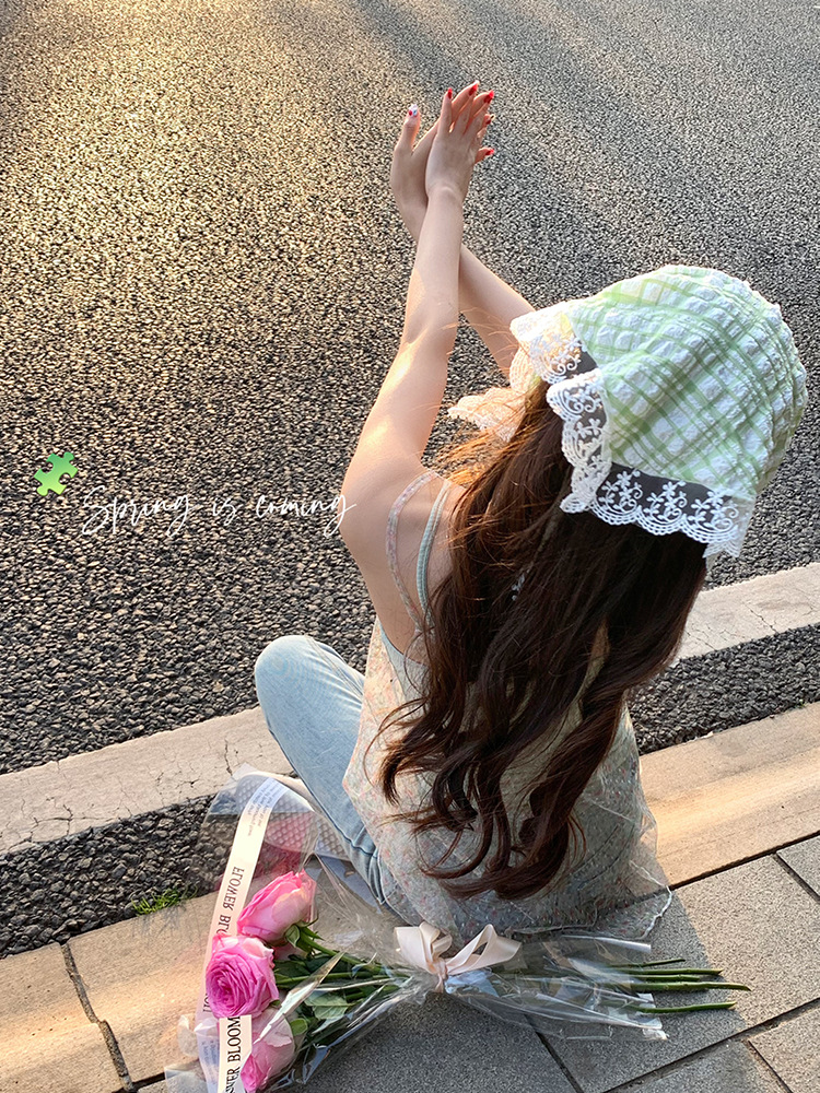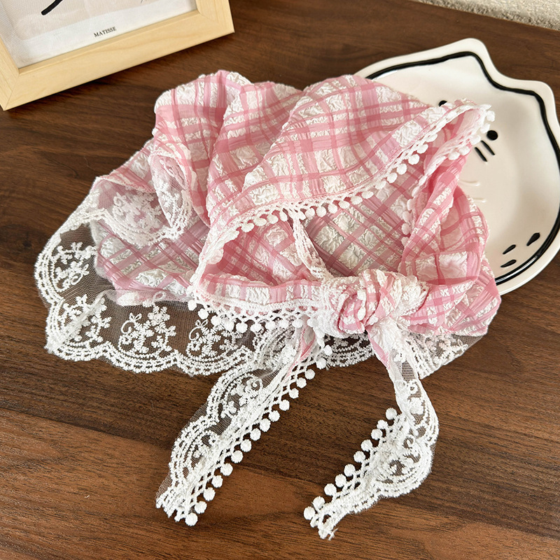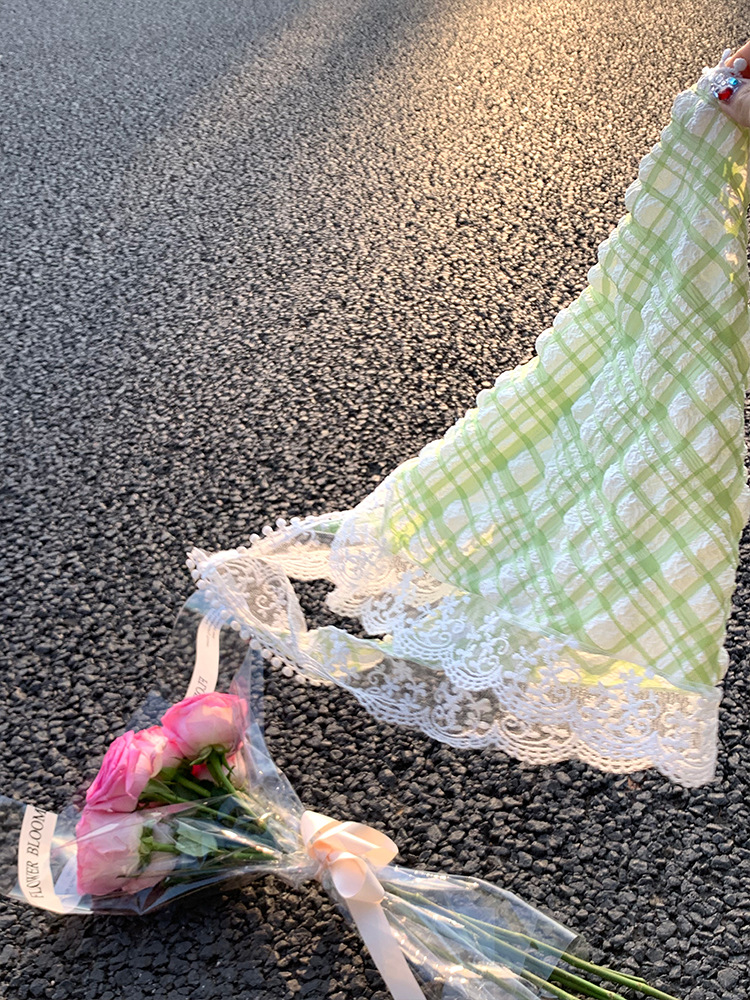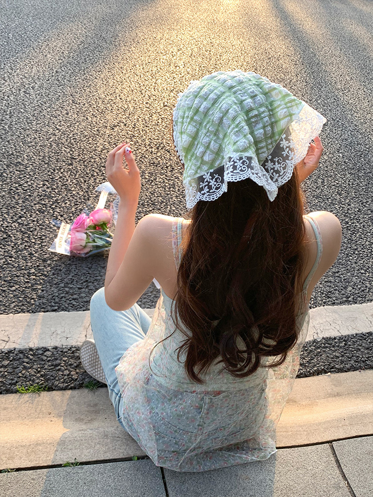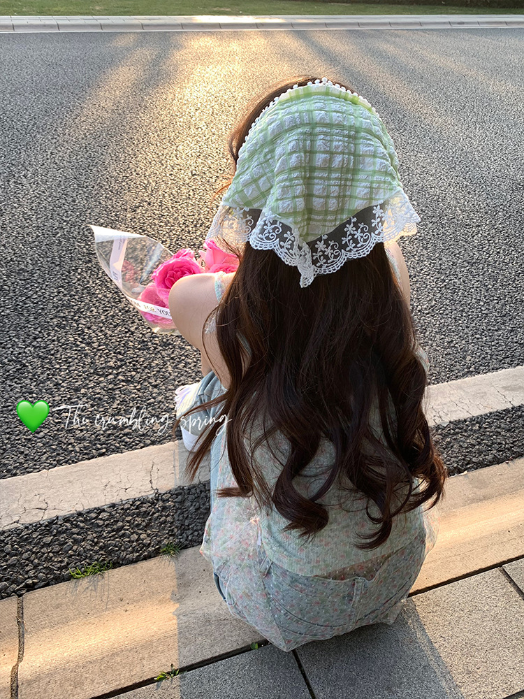 봄 녹색 여름 실크 스카프 얇은 헤어 밴드 복고풍 닫힌 발가락 스카프 여성을위한 프랑스 기질 레이스 삼각형 스카프스토어 가기