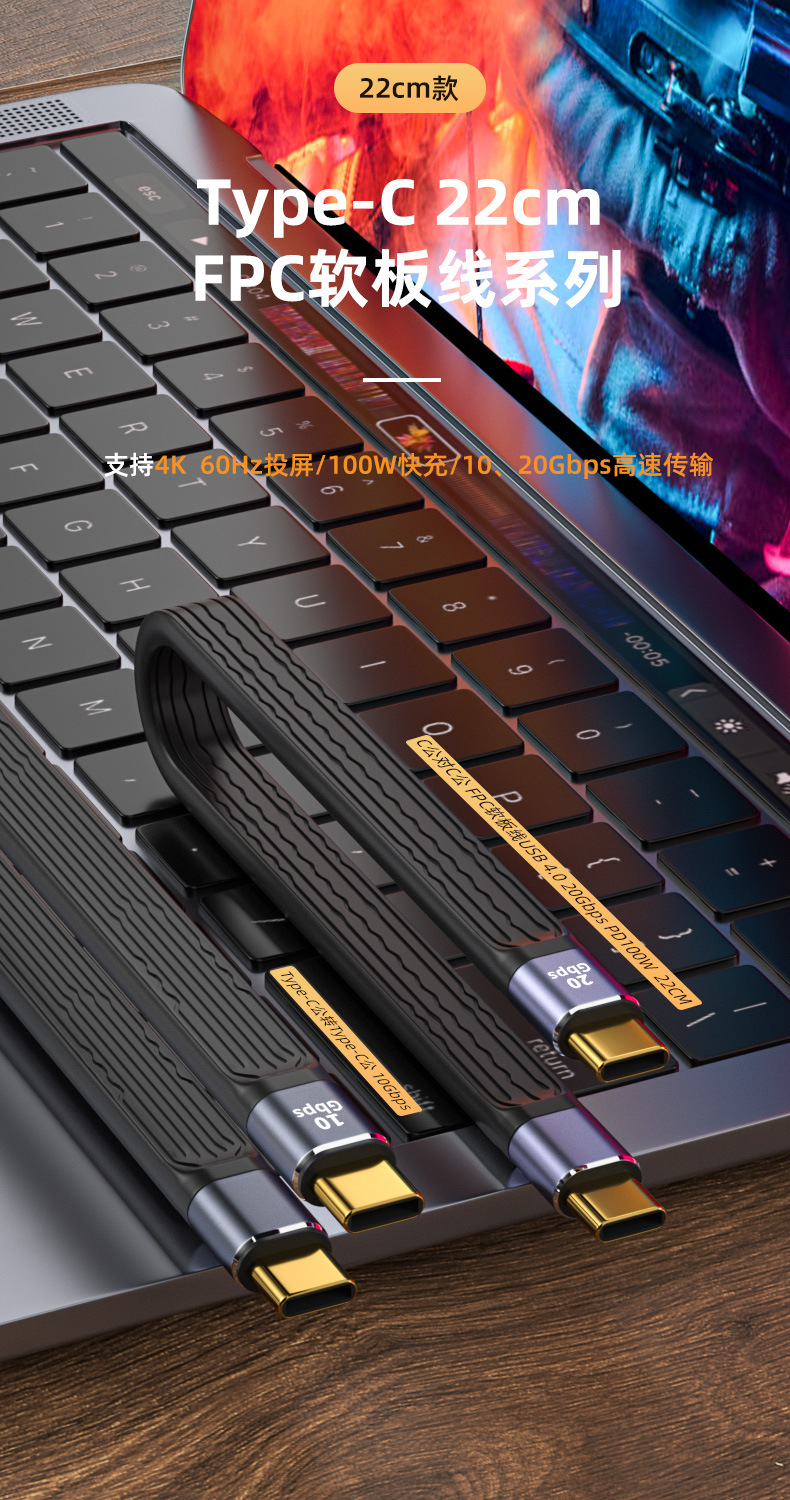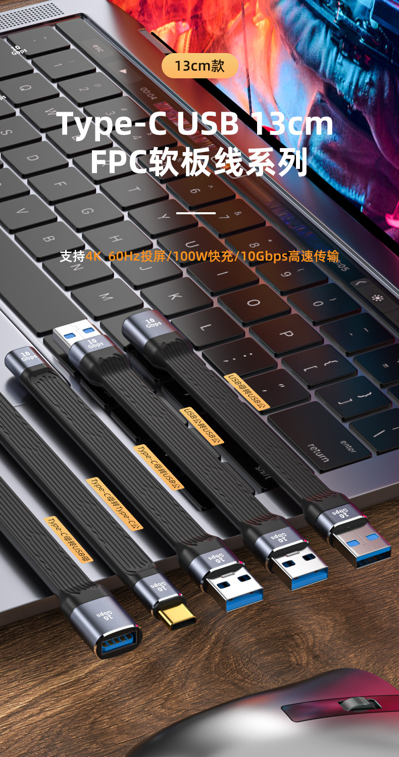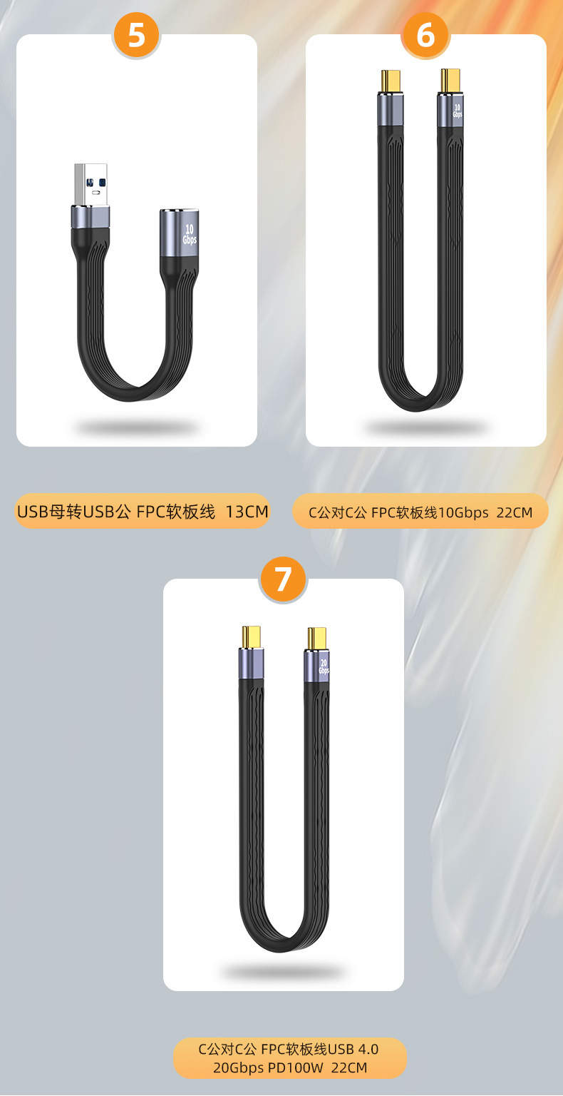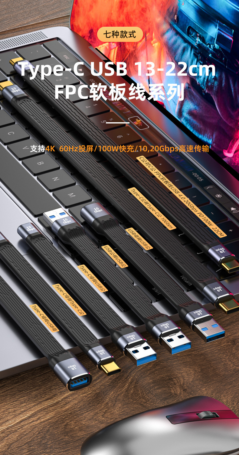 USB4.0FPC 유연한 짧은 케이블 USB3.1 연장 케이블 번개 4 기능 데이터 케이블 40Gb 전송 PD 빠른 충전