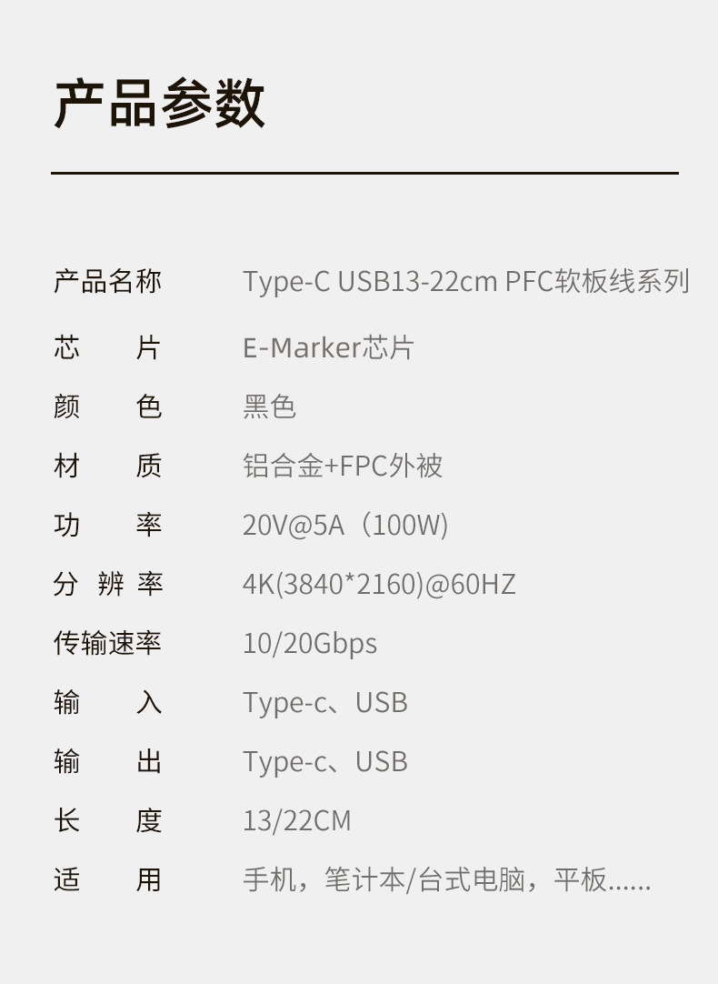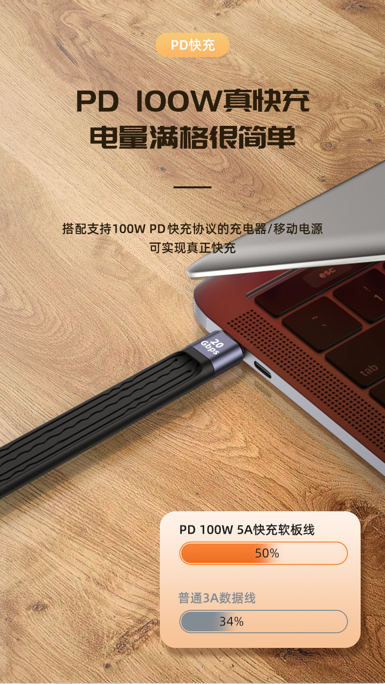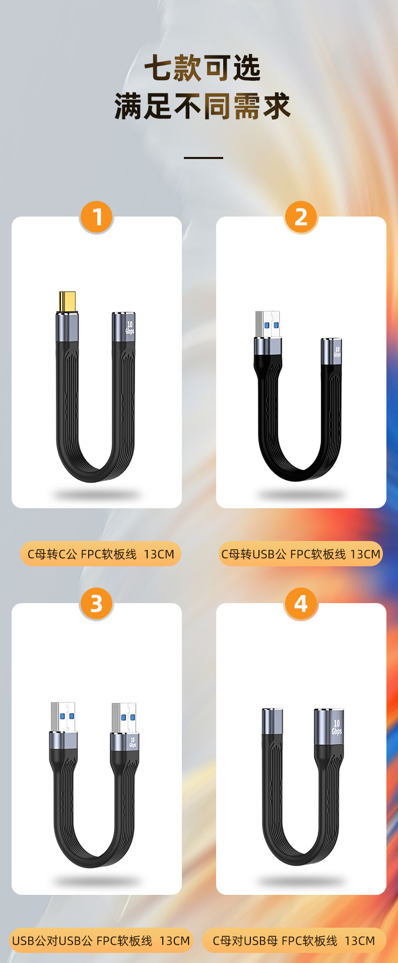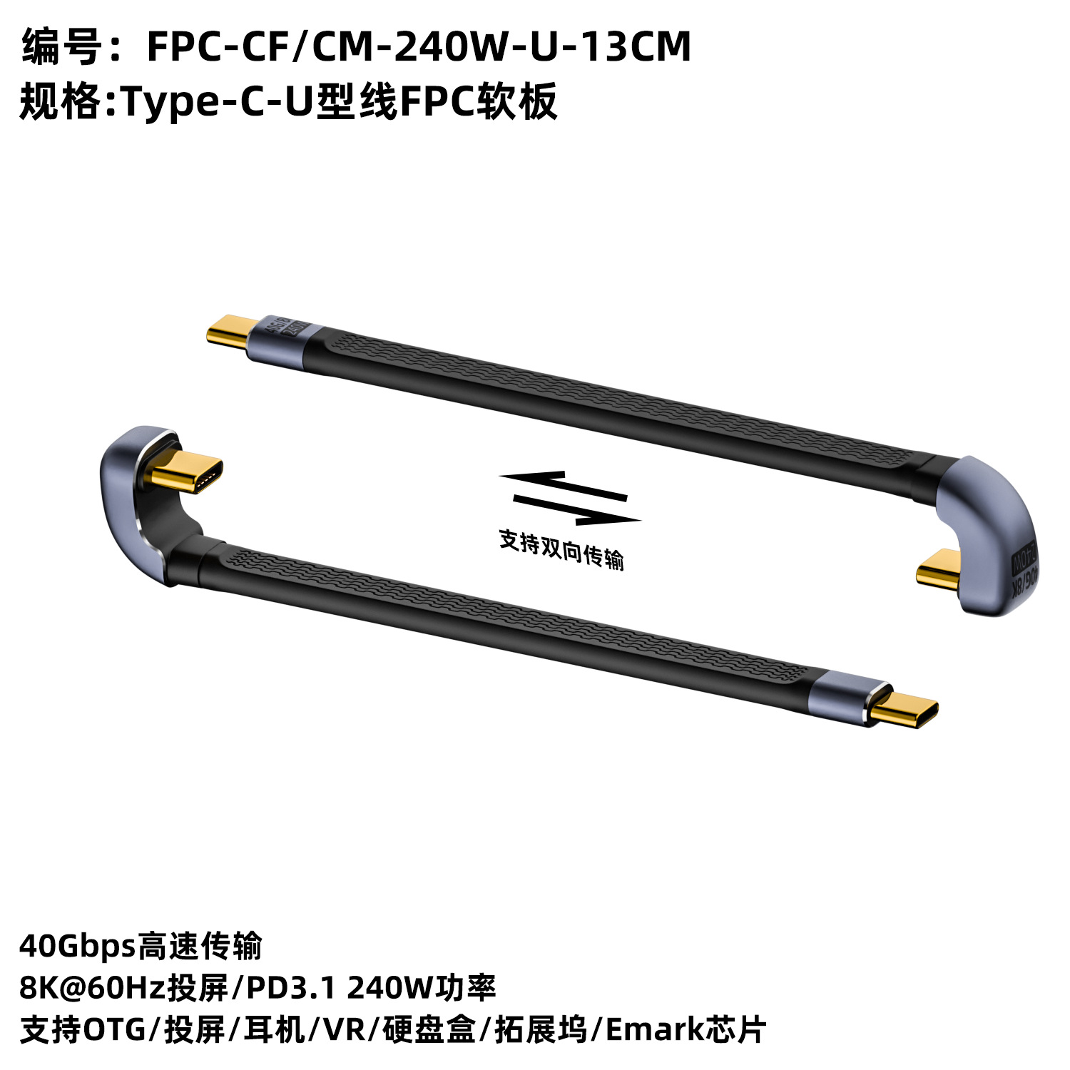 USB4.0FPC 유연한 짧은 케이블 USB3.1 연장 케이블 번개 4 기능 데이터 케이블 40Gb 전송 PD 빠른 충전