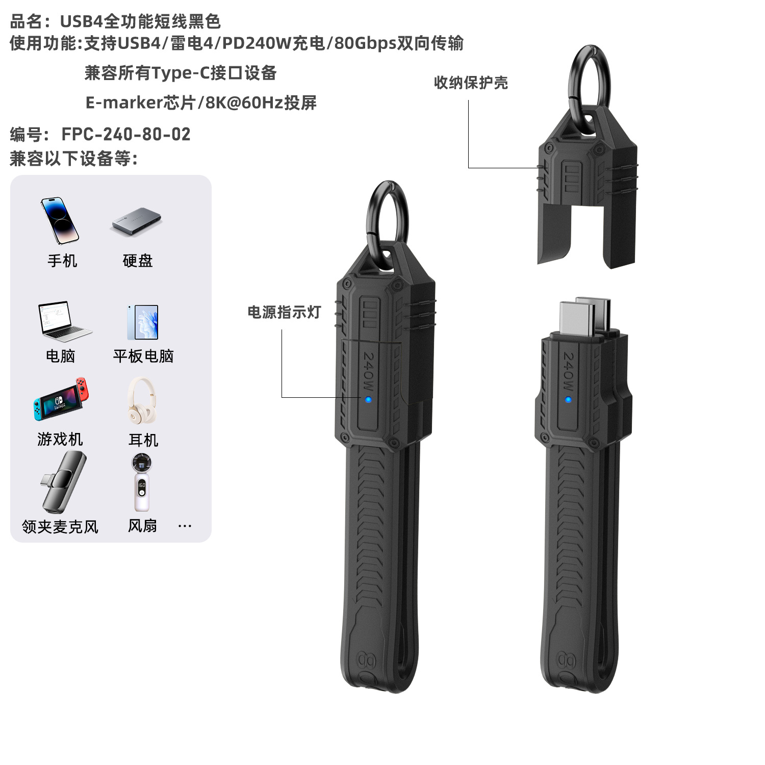 • USB4.0 Type-C 수-수 직선 80Gbps/240W(키체인 포함) 검정색