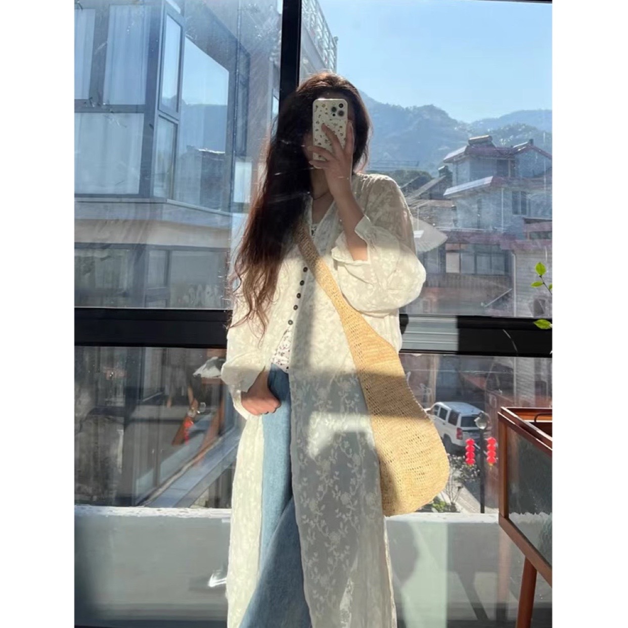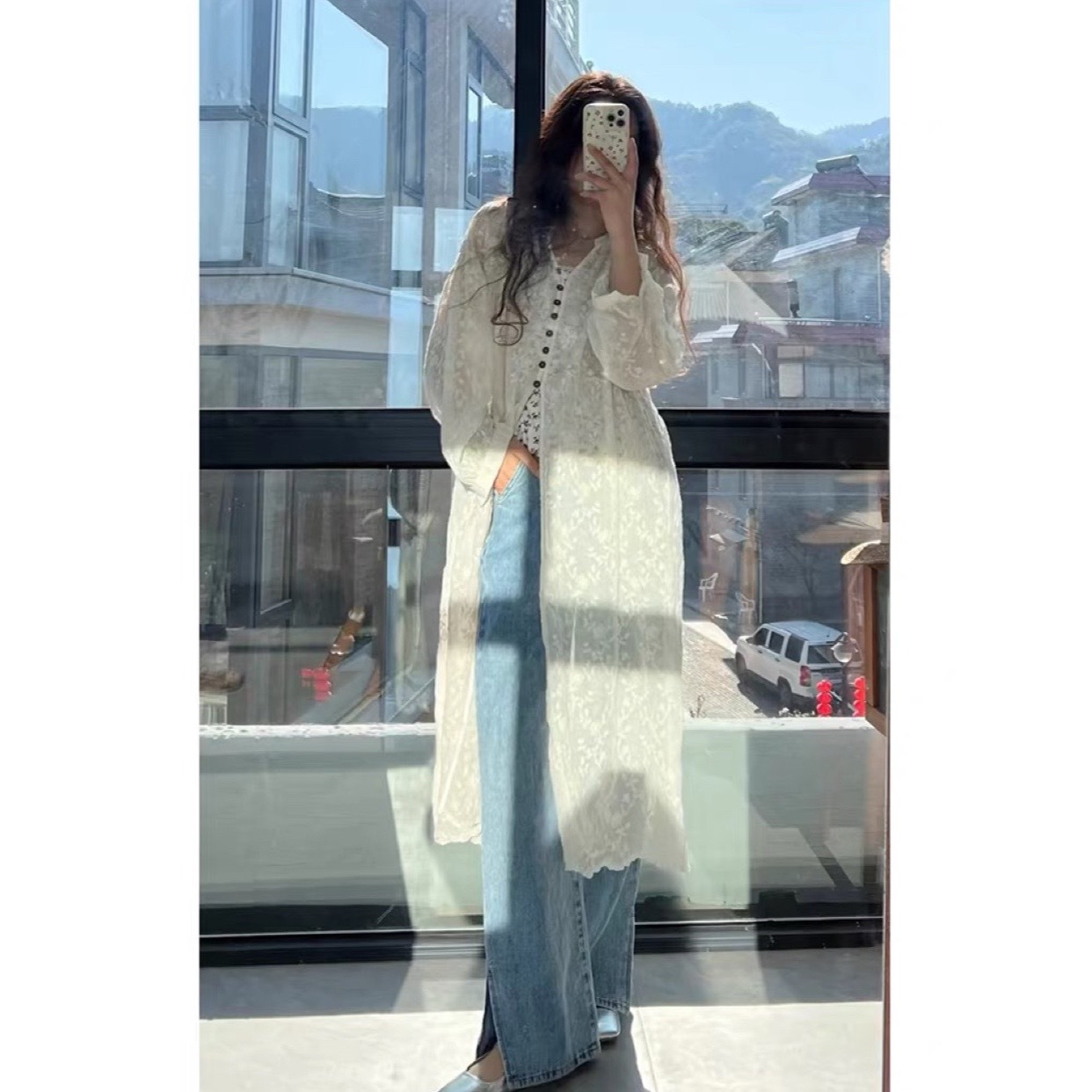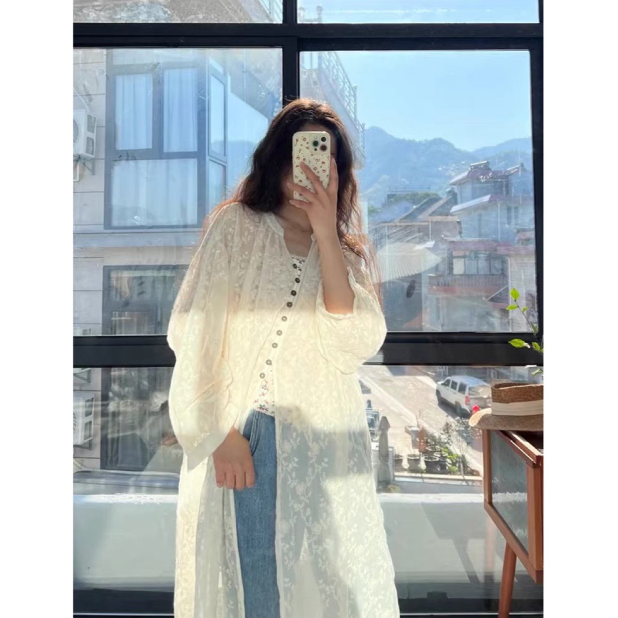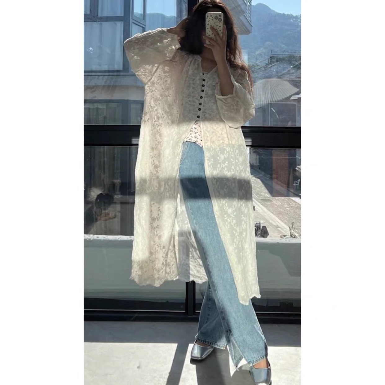 올해 인기있는 아름다운 작은 셔츠 여름 인터넷 유명 인사 태양 보호 흰색 긴 블라우스 레이스 카디건 코트 여성 디자인 감각 봄
