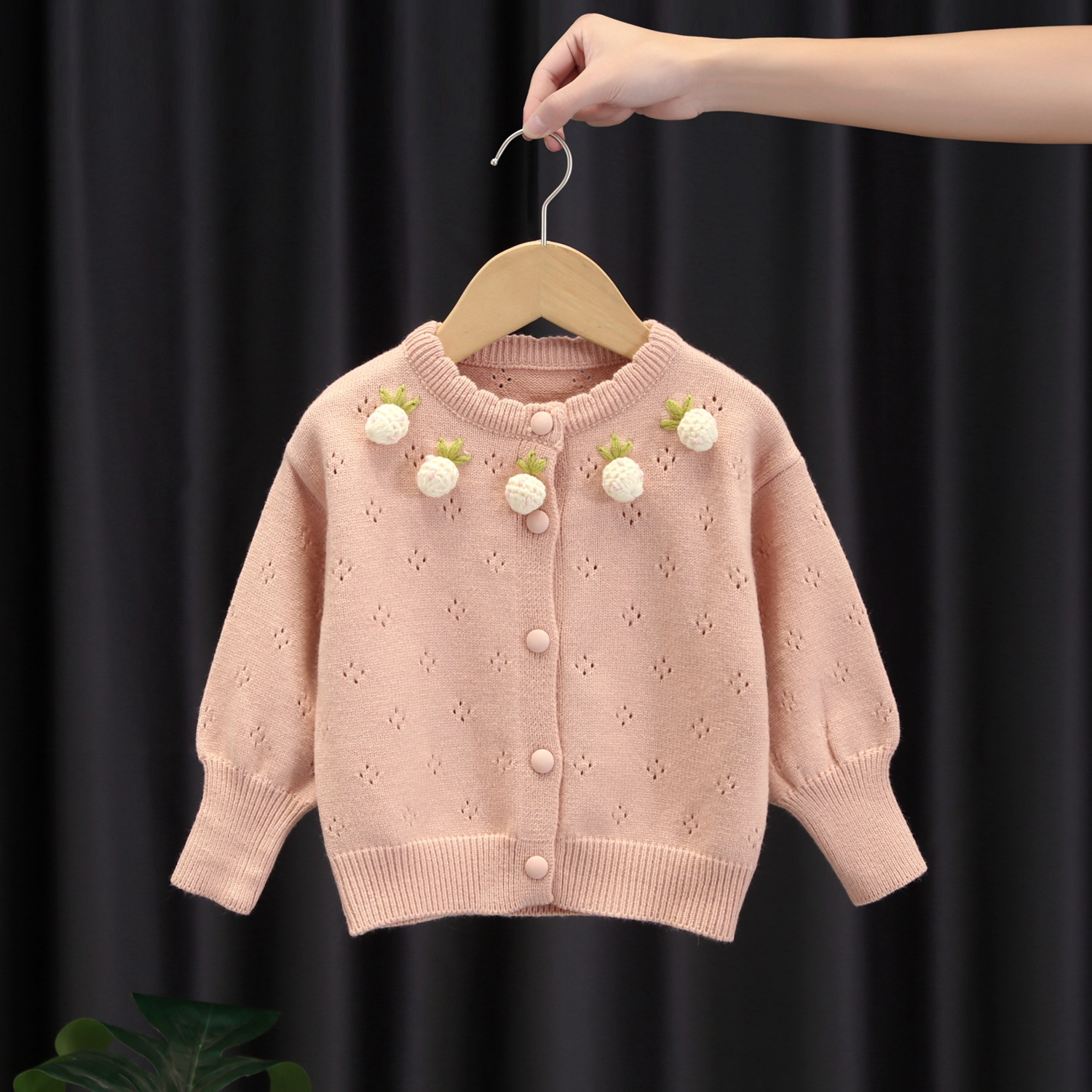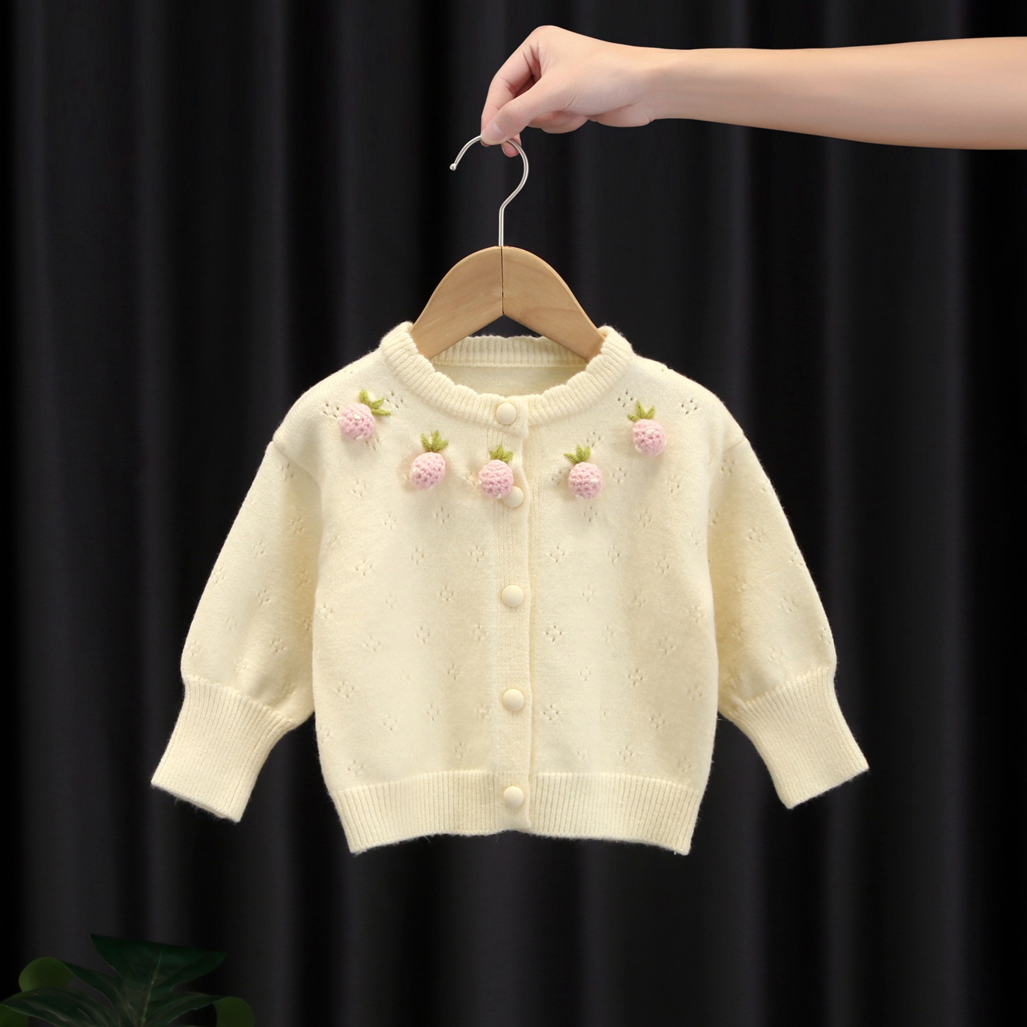 소녀 스웨터 서양식 2024 봄 새 아기 소녀 딸기 니트 스웨터 어린이 얇은 카디건 탑