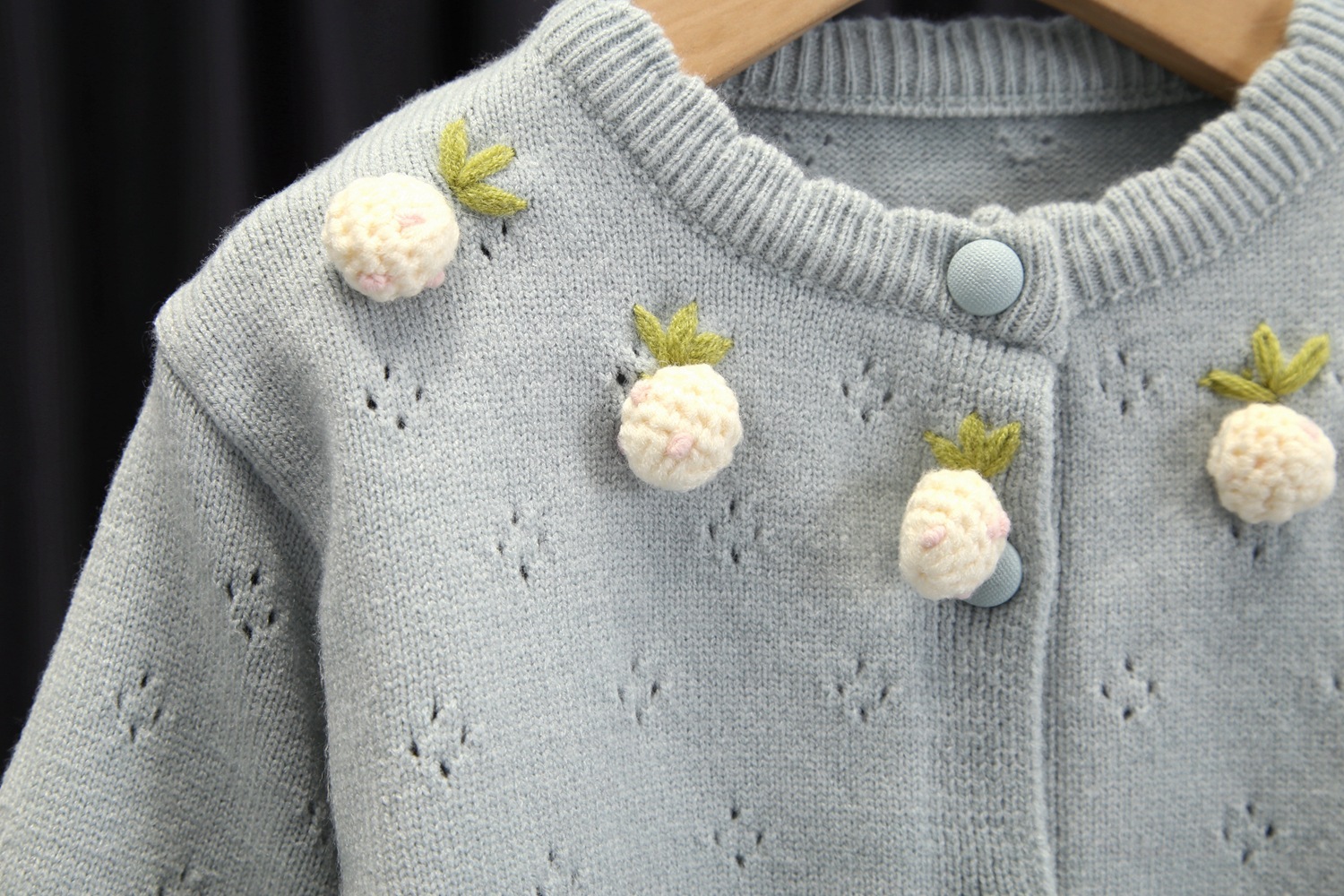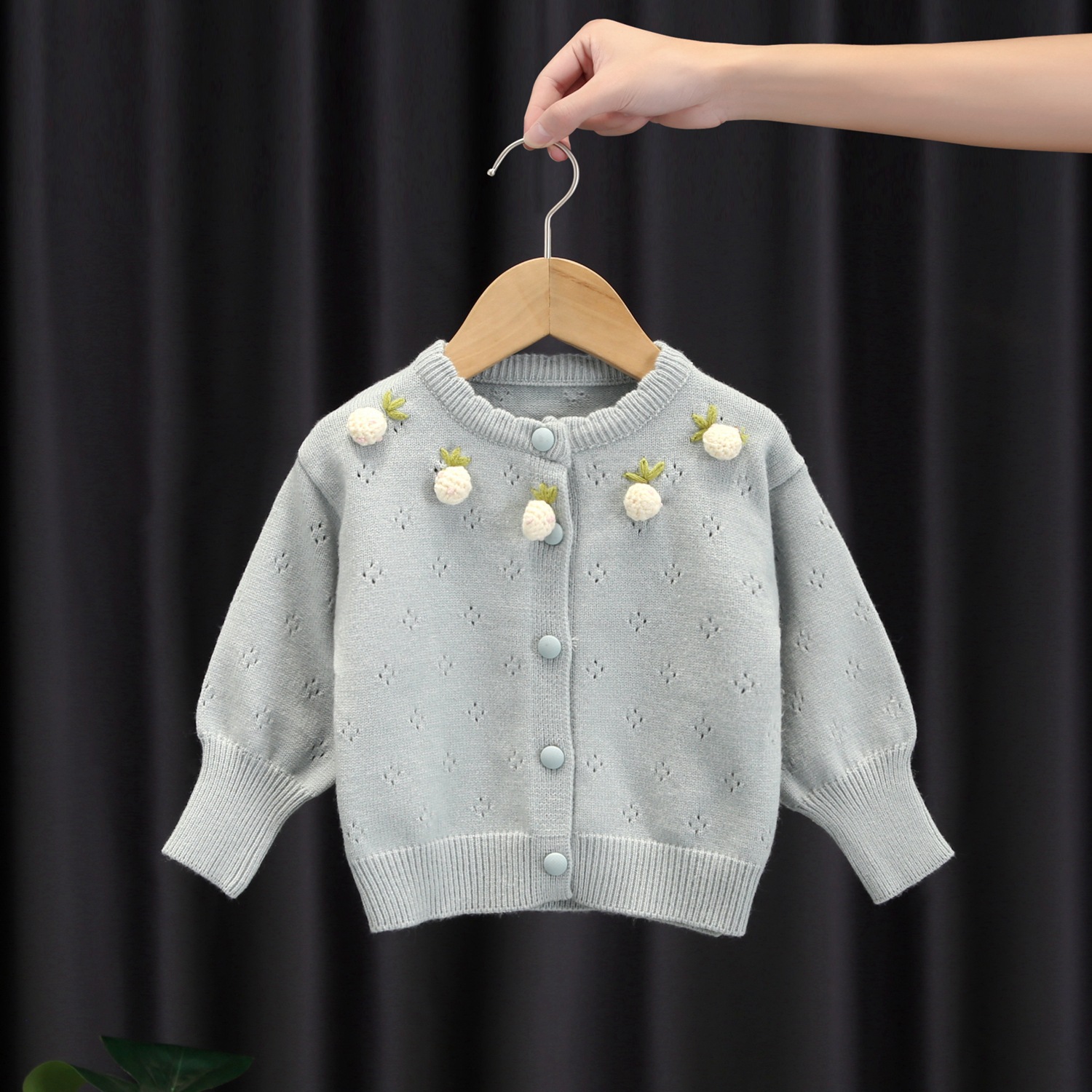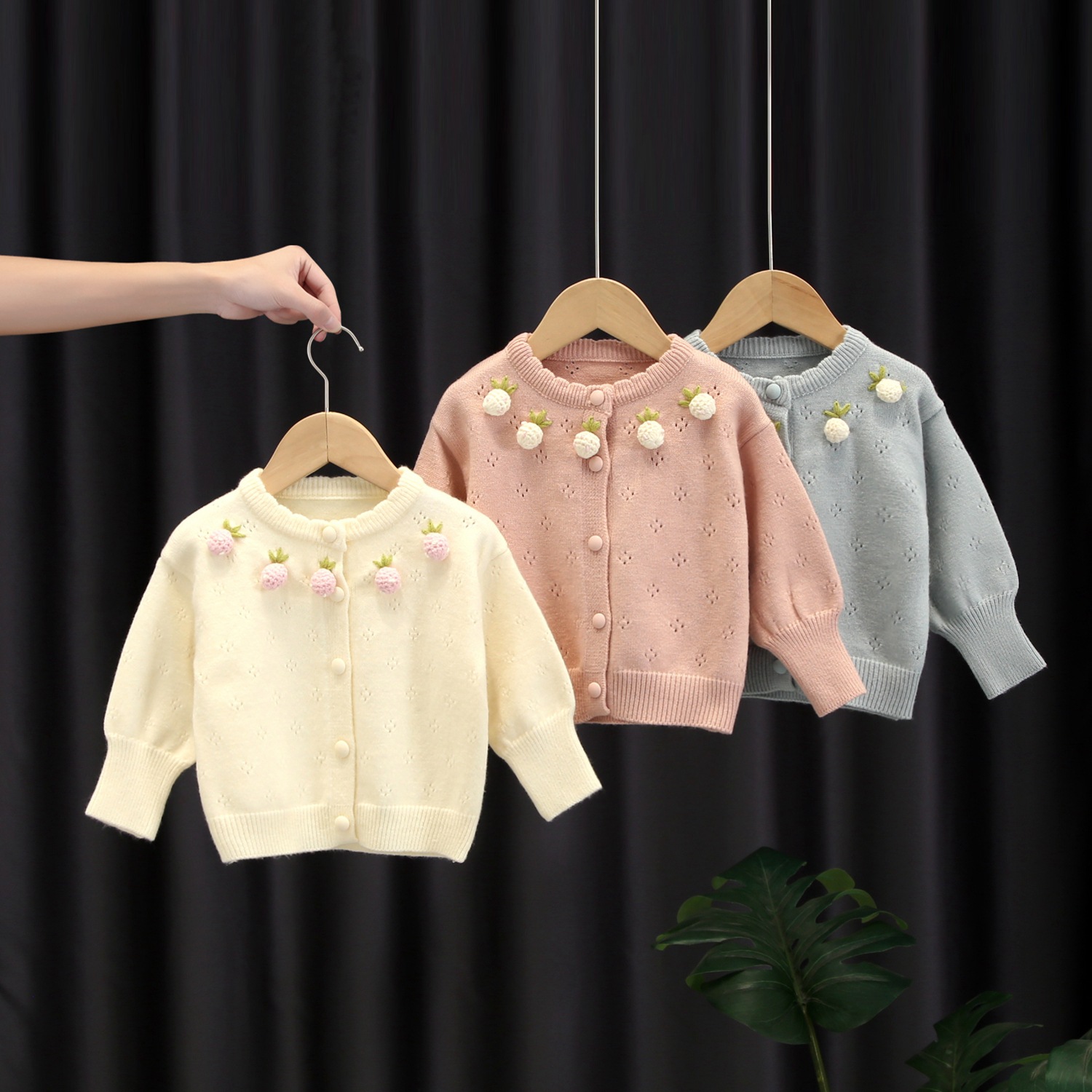 소녀 스웨터 서양식 2024 봄 새 아기 소녀 딸기 니트 스웨터 어린이 얇은 카디건 탑스토어 가기